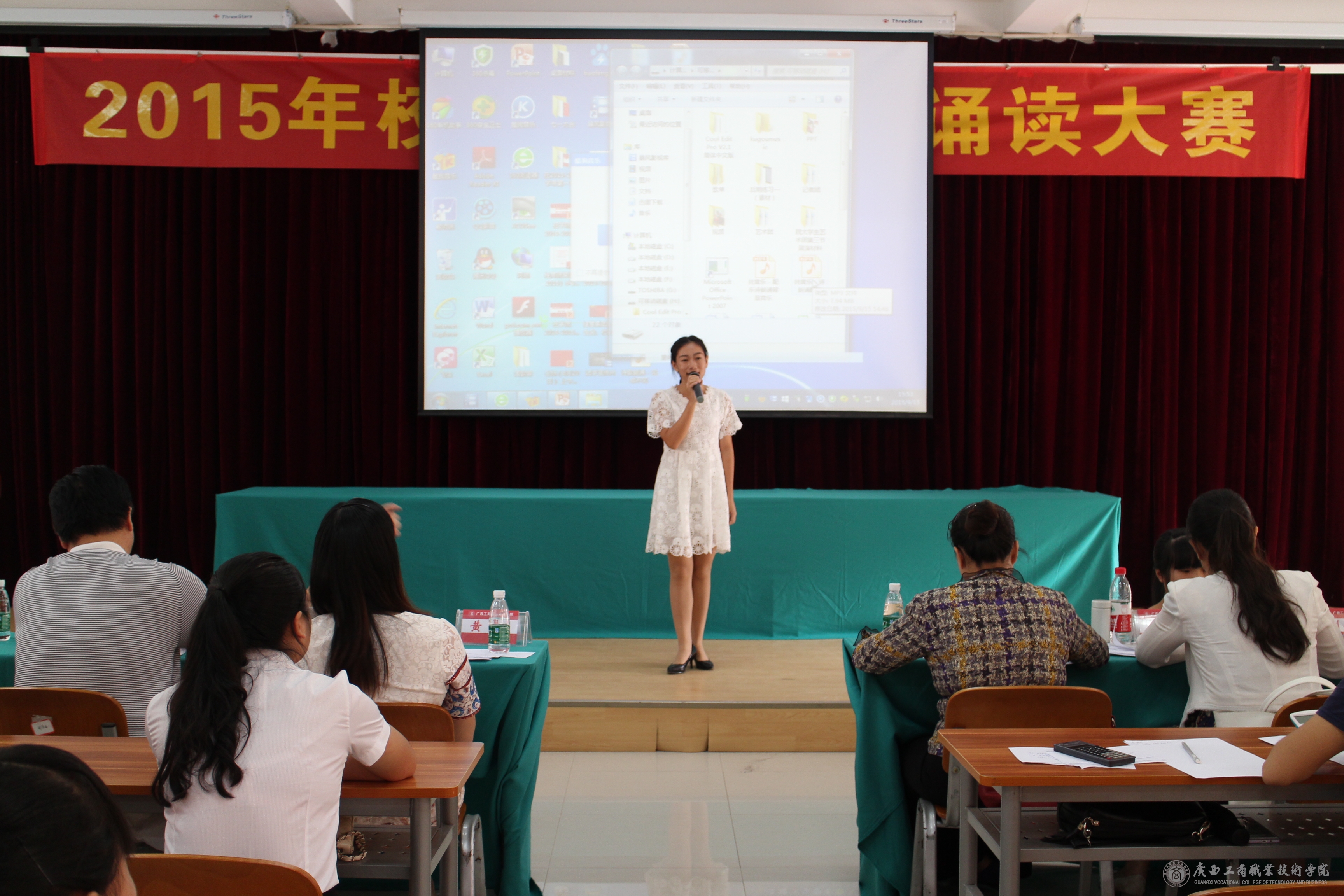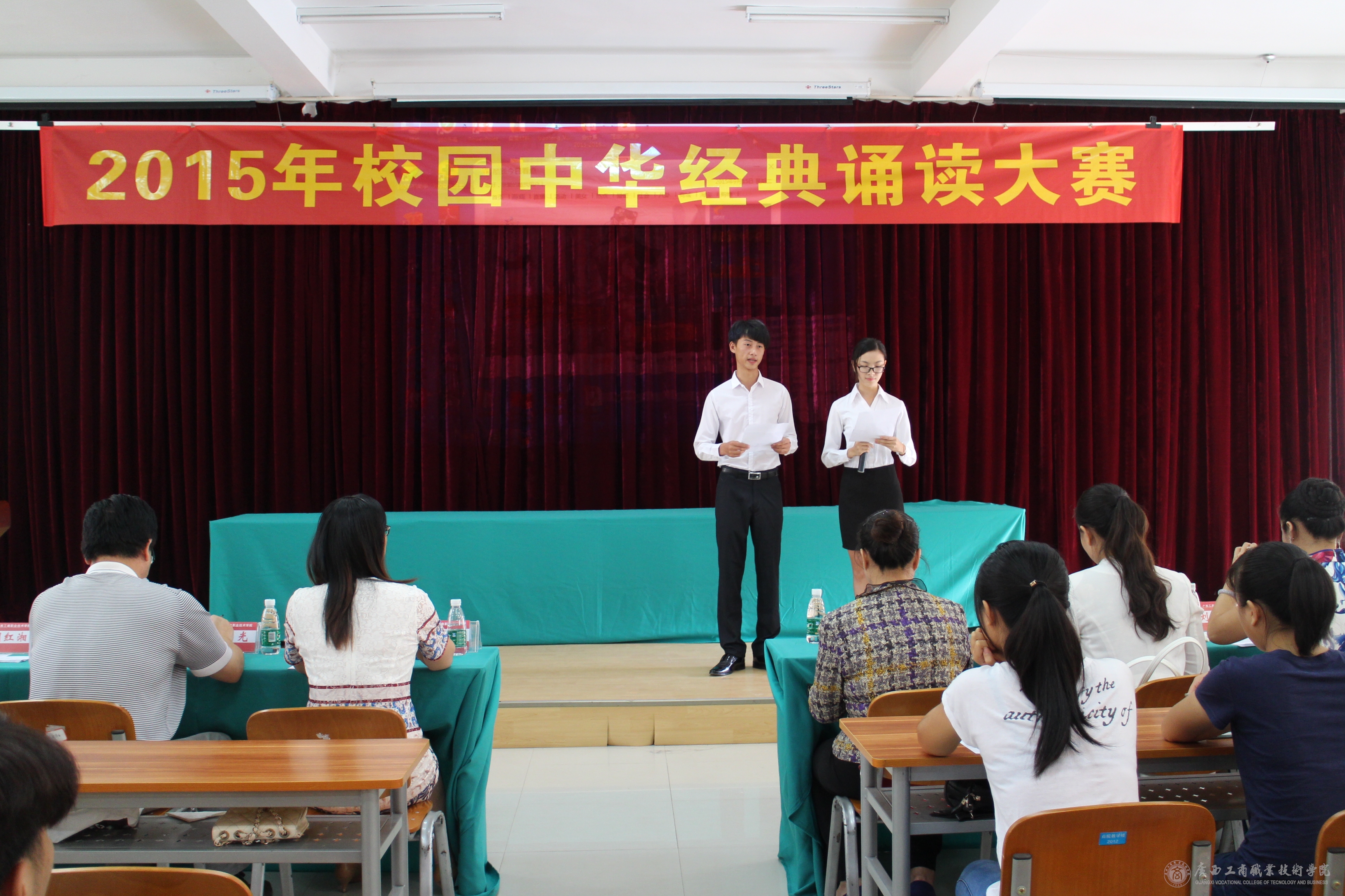 選手們充滿感情的朗誦贏得了觀眾的陣陣掌聲。比賽最后評(píng)出一等獎(jiǎng)1名,二等獎(jiǎng)2名,三等獎(jiǎng)4名,優(yōu)秀獎(jiǎng)8名。營(yíng)策1432班劉行杰同學(xué)獲得一等獎(jiǎng),會(huì)電1431班覃蕾同學(xué),食檢1432班韋思凡同學(xué)獲得二等獎(jiǎng)。測(cè)試站將選拔部分獲獎(jiǎng)選手參加第八屆廣西中華經(jīng)典誦讀大賽的視頻預(yù)賽。期待選手們?cè)诮衲甑谋荣愔蝎@得好成績(jī)。