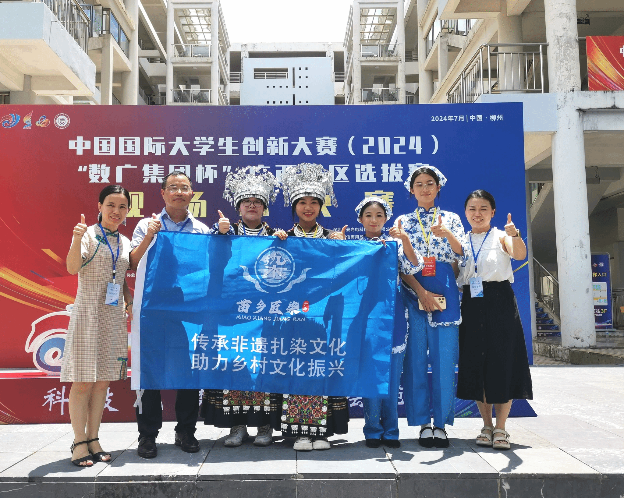 (《苗鄉(xiāng)匠染:廣西非遺扎染產業(yè)的活態(tài)傳承與創(chuàng)新》項目團隊合影)
