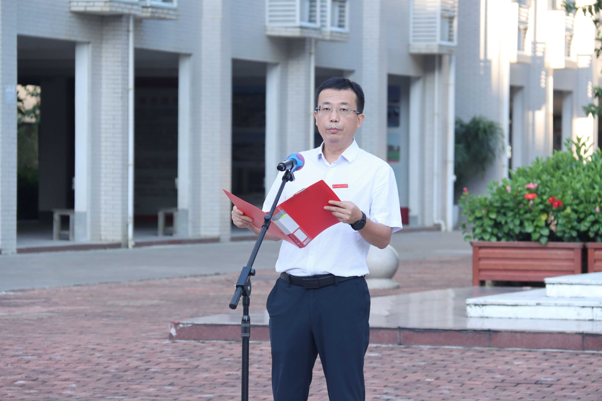 李維書記、劉進(jìn)校長、陳寧春副校長分別在武鳴校區(qū)、鵬飛校區(qū)、中堯校區(qū)作國旗下主題講話。他們在講話中回顧了我校上半年各項(xiàng)工作所取得的扎實(shí)成效,表示成績的取得,充分展現(xiàn)了我校師生積極探索、奮發(fā)進(jìn)取、勇于創(chuàng)新、追求卓越的精氣神。并對(duì)學(xué)子們作新學(xué)期寄語,勉勵(lì)同學(xué)們一要有理想、肯奮斗,堅(jiān)定不移聽黨話、跟黨走,懷抱夢想又腳踏實(shí)地,敢想敢為又善作善成;二要有恒心、增本領(lǐng),珍惜在校學(xué)習(xí)的寶貴時(shí)光,多參加職業(yè)技能的學(xué)習(xí)、培訓(xùn)、競賽和崗位實(shí)踐,努力提升自己的就業(yè)競爭力和創(chuàng)業(yè)能力;三要有信心、善創(chuàng)新,注重培養(yǎng)和提高自身學(xué)習(xí)能力、創(chuàng)新能力,以鍥而不舍、創(chuàng)新進(jìn)取的姿態(tài)踔厲奮進(jìn)、篤行不怠,寫好自己的“成長記”,交出合格的“成長答卷”。