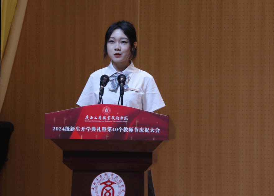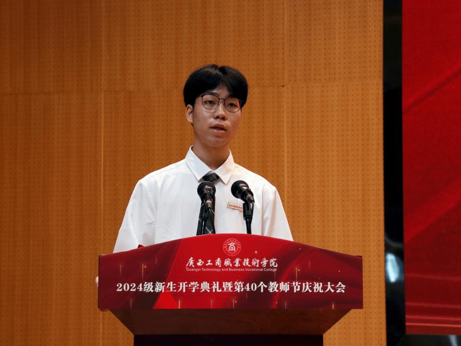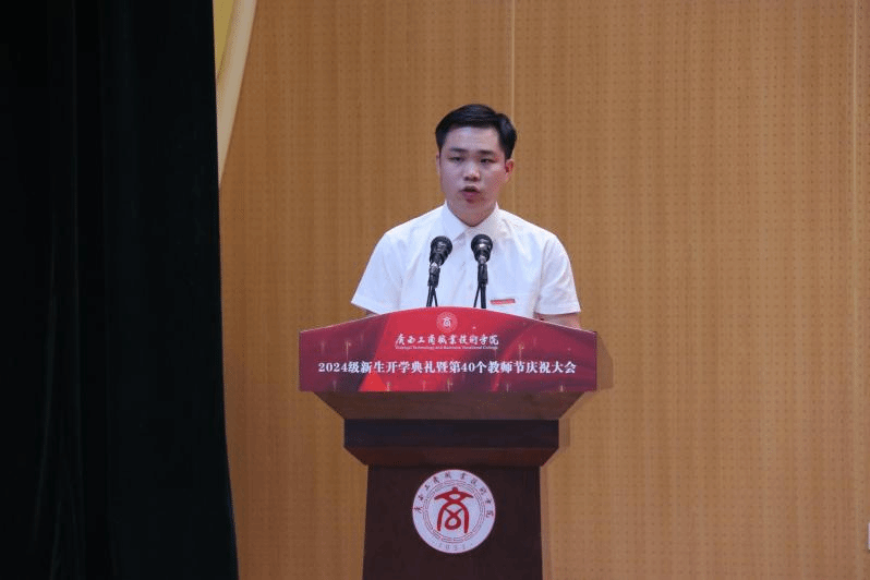 優(yōu)秀在校生代表李宇琦分享了在大學(xué)學(xué)習(xí)生活的感悟,鼓勵(lì)新同學(xué)要積極融入集體生活、做好學(xué)業(yè)規(guī)劃、勇于嘗試、敢于挑戰(zhàn),讓青春之花在廣商院綻放,創(chuàng)造出自己的精彩人生。