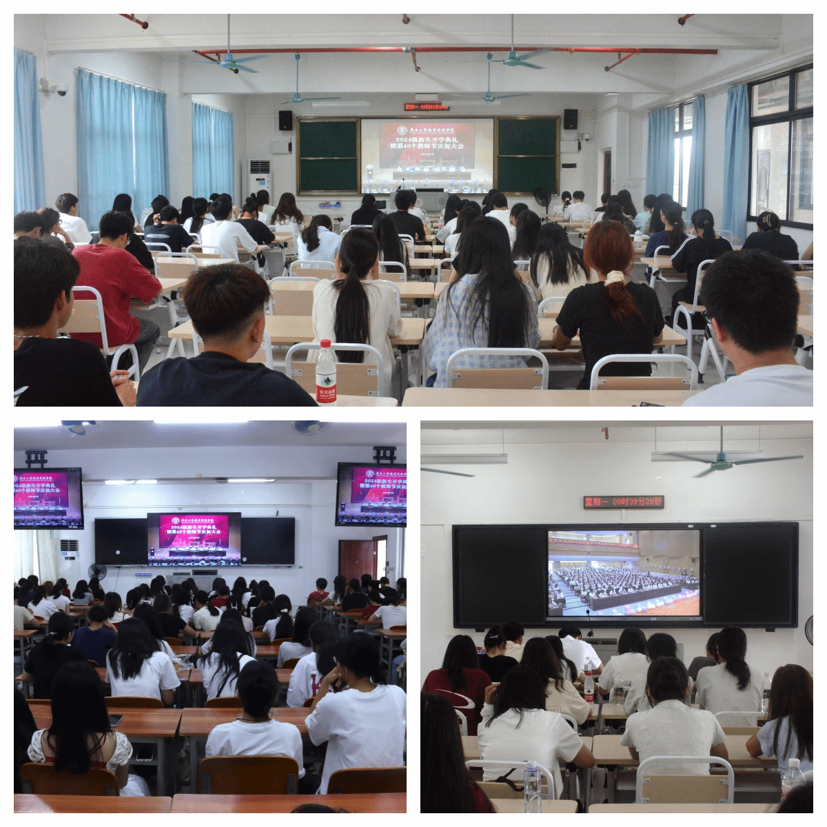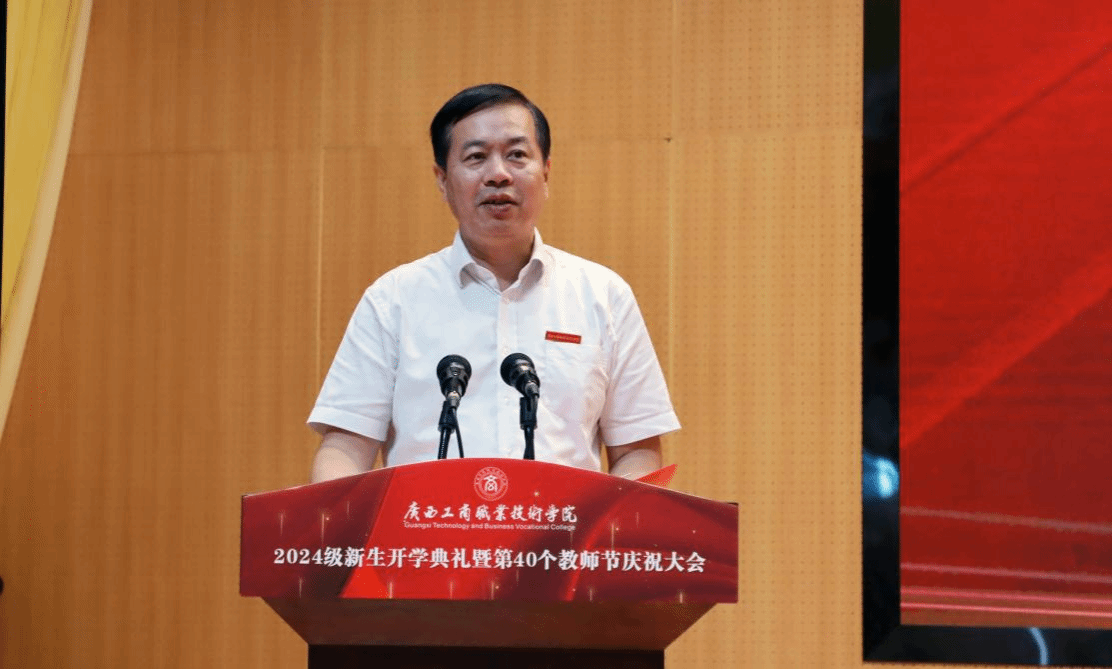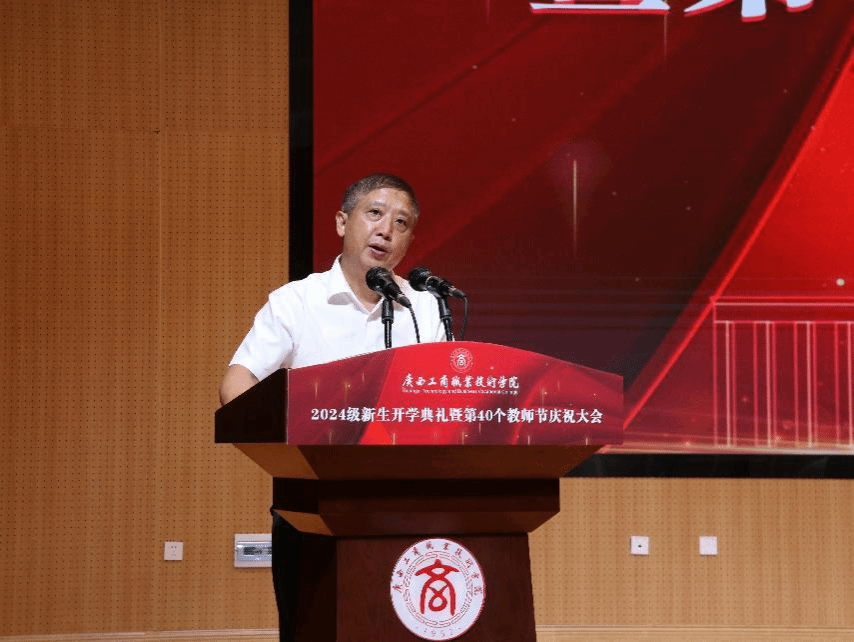 金秋九月,碩果盈枝。為熱烈歡迎2024級(jí)新生到學(xué)校學(xué)習(xí),隆重慶祝第40個(gè)教師節(jié),9月9日上午,我校以線上線下相結(jié)合的方式在武鳴校區(qū)、鵬飛校區(qū)、中堯校區(qū)同步舉行2024級(jí)新生開(kāi)學(xué)典禮暨第40個(gè)教師節(jié)慶祝大會(huì)。學(xué)校領(lǐng)導(dǎo)李維、劉進(jìn)、安仲文、陳寧春、韋云鳳、闕勇平,各單位、各部門(mén)主要負(fù)責(zé)人,受表彰教師,新入職教師,武鳴校區(qū)2024級(jí)輔導(dǎo)員代表和武鳴校區(qū)2024級(jí)新生代表在線下主會(huì)場(chǎng)參會(huì),全體2024級(jí)新生及各部門(mén)、各單位教職工在線上參會(huì)。學(xué)校黨委副書(shū)記安仲文主持大會(huì)。