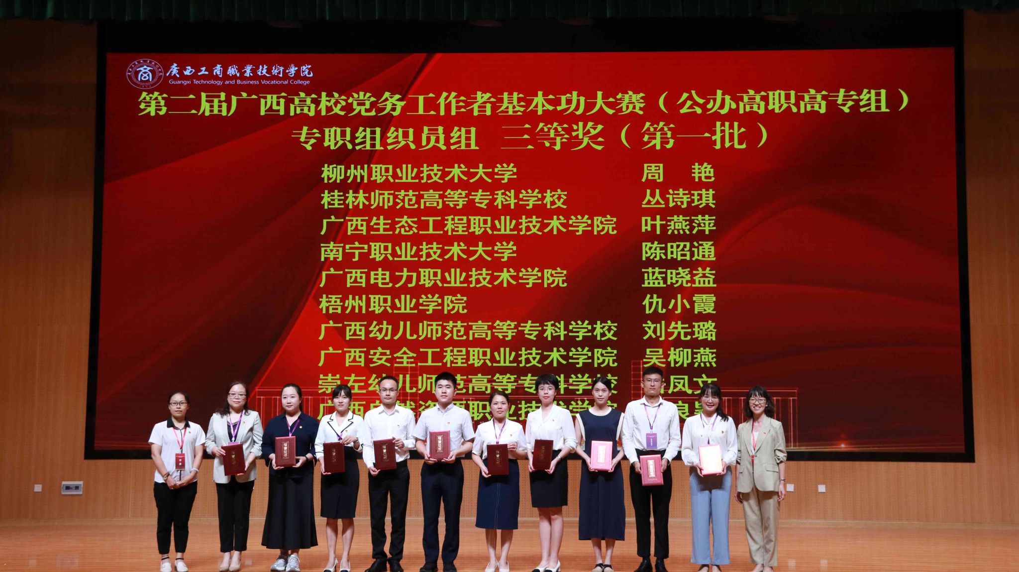 “創(chuàng)先爭優(yōu)”練尖兵,“比學(xué)趕超”展風(fēng)采。9月19日至20日,由自治區(qū)黨委教育工委主辦、我校承辦的第二屆廣西高校黨務(wù)工作者基本功大賽(公辦高職高專組)在學(xué)校武鳴校區(qū)舉辦,來自全區(qū)29所高職高專院校的82名黨務(wù)工作者同臺競技、角逐爭魁。學(xué)校黨委書記李維,自治區(qū)黨委教育工委組織部部長、一級調(diào)研員唐春燕出席大賽閉幕式。