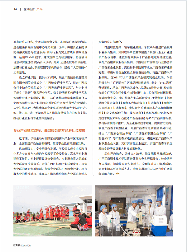 2024年3月出版的《教育家》雜志刊發(fā)學(xué)校黨委書記李維署名文章《夯實(shí)職業(yè)技能,育“糧·商”人才》,全文如下。