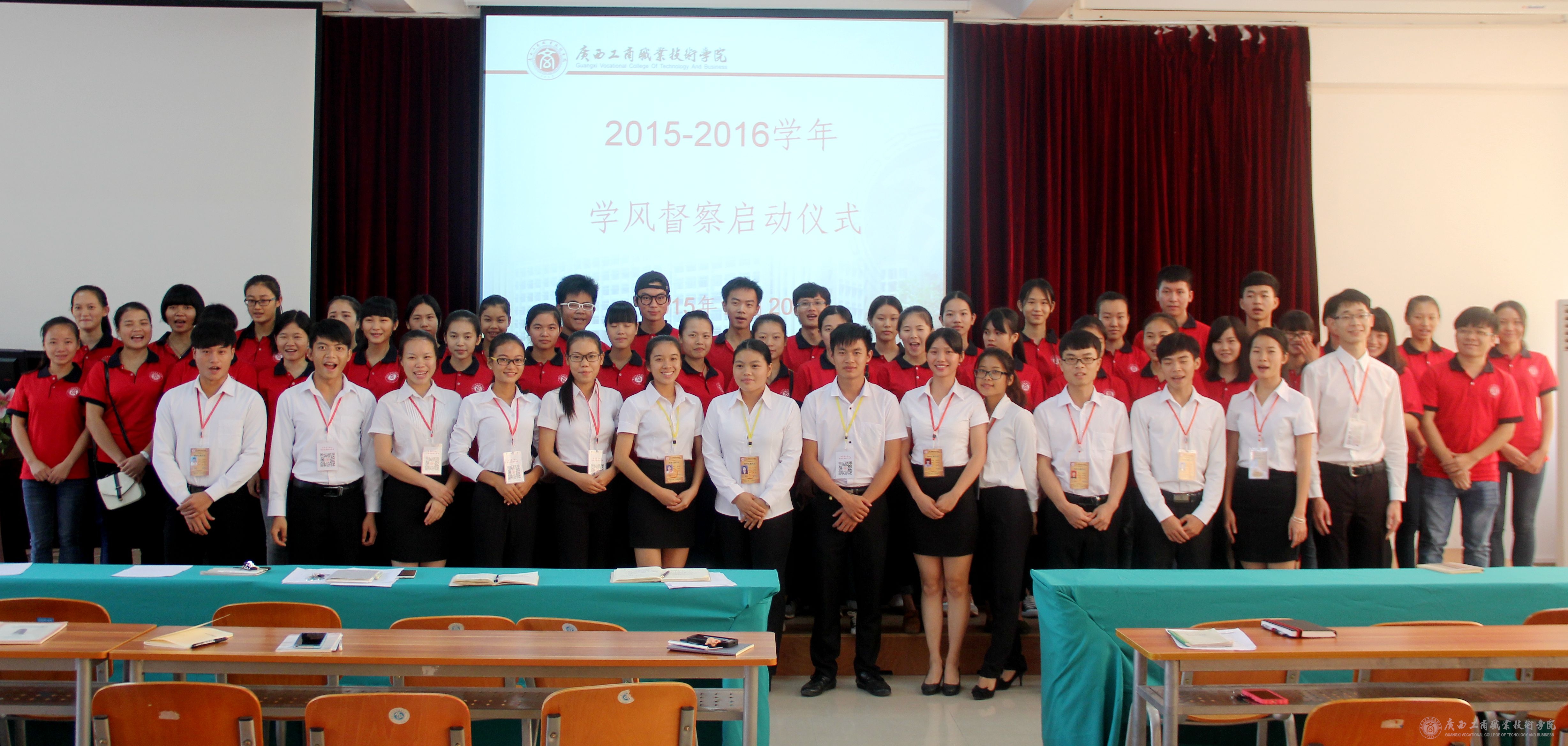 會上,學院學生會學生委員會主席玉琴作學院2014-2015學年學風督查工作總結(jié)和學院2015-2016學年學風督查工作介紹,她指出我院在2014-2015學年的學生督查工作狀況的缺漏,對此不足表示在今后需要大大改進,同時強調(diào)要加大力度對學院學生的監(jiān)察工作,為2015-2016學年的學風督查工作打下基礎。學生代表馬麗飛同學宣讀學風建設倡議書。