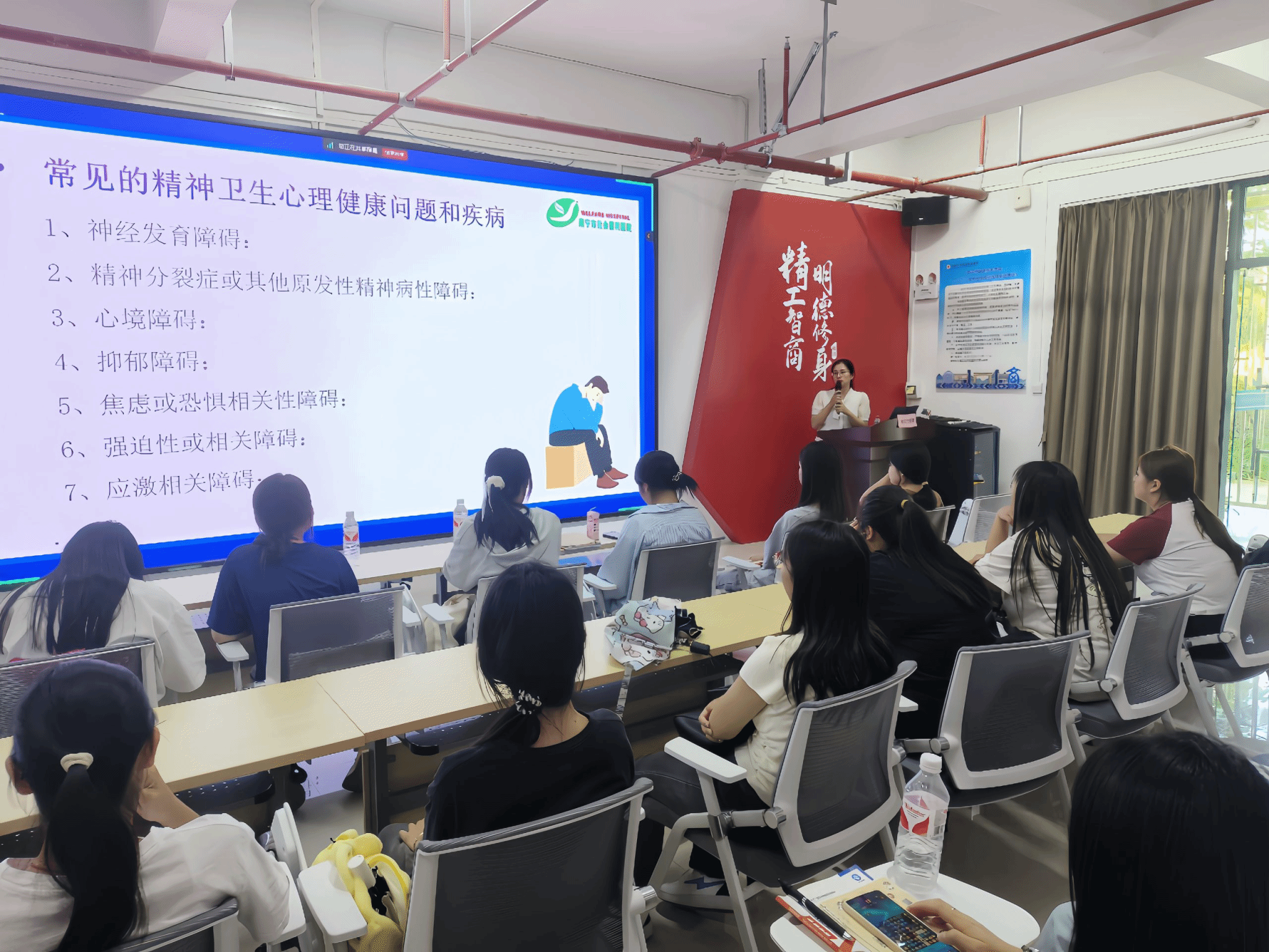 義診活動共三部分,一是開展心理測量服務(wù),在場的資深心理醫(yī)生對師生的測量結(jié)果進(jìn)行了詳細(xì)解答;二是開展個(gè)性化心理咨詢服務(wù),心理醫(yī)生一對一與求助的師生溝通,認(rèn)真傾聽,情感關(guān)注,及時(shí)解答師生關(guān)于心理健康方面的疑惑。三是開展心理健康知識講座,心理醫(yī)生圍繞師生關(guān)注度較高的話題開展主題為《精神衛(wèi)生知多少》的講座,為廣大師生普及心理健康知識。
