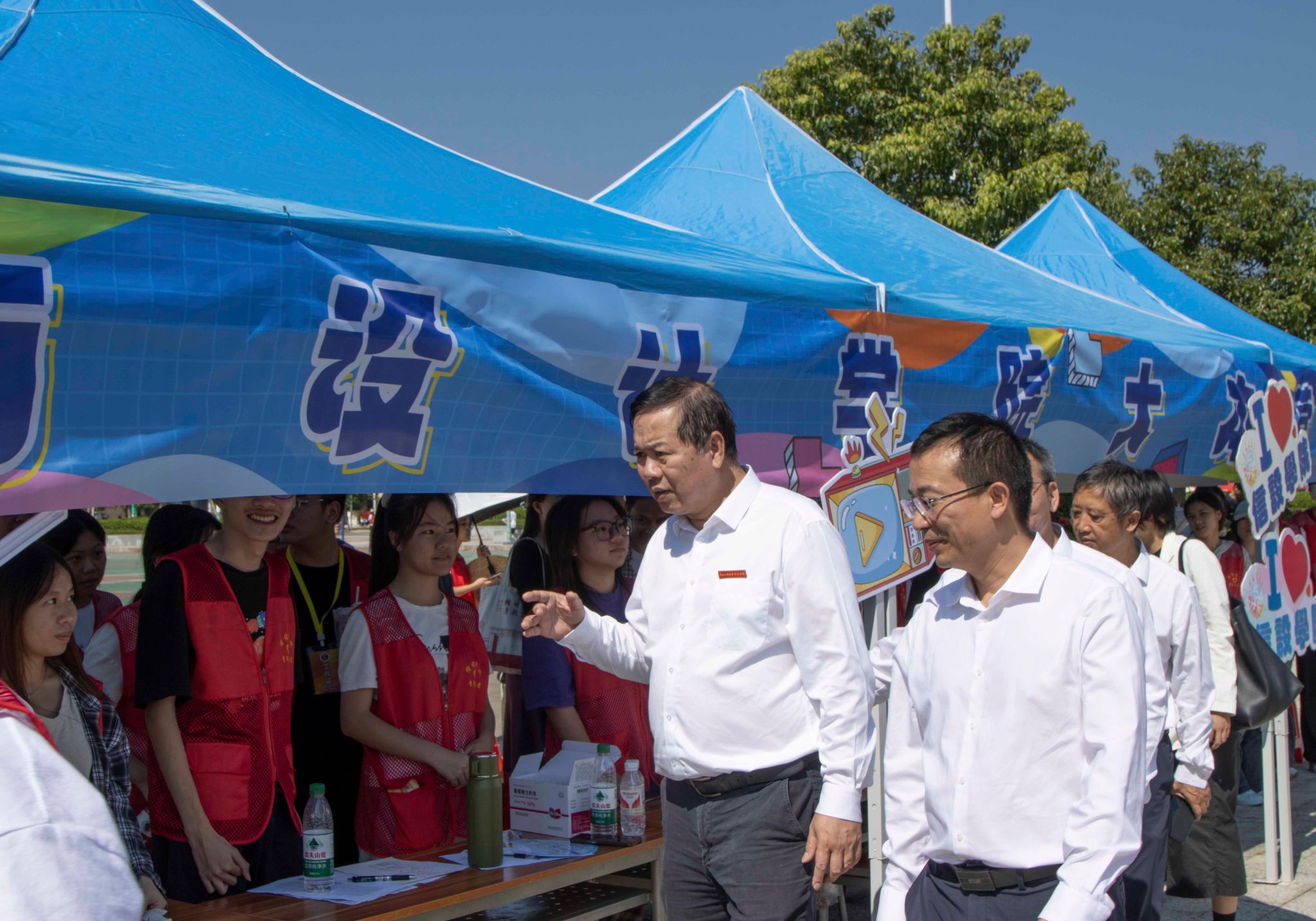 學校領導高度重視本屆運動會,在賽事開展期間,到現(xiàn)場檢查指導工作,保證賽事順利開展,與志愿者們親切交談并為運動健兒們加油助威。