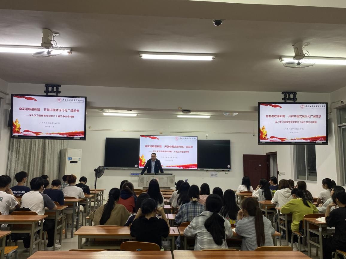 11月5日,學校副校長陳寧春在鵬飛校區(qū)2421教室為計應2401班同學講授題為《奮發(fā)進取譜新篇 開辟中國式現代化廣闊前景——深入學習貫徹黨的二十屆三中全會精神》主題思政課。