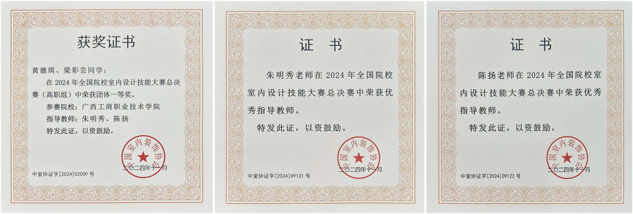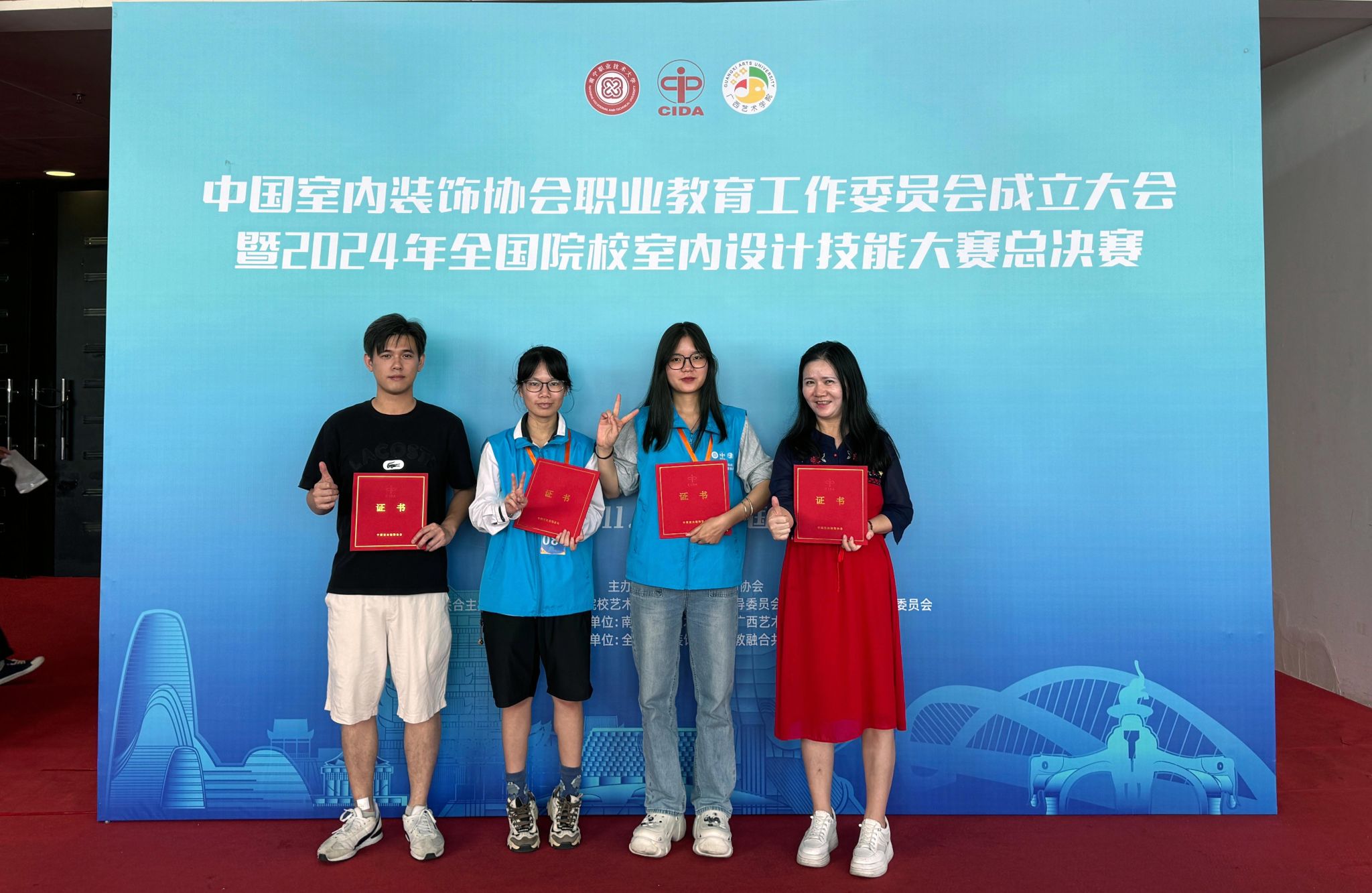 2024年11月16日,由中國室內(nèi)裝飾協(xié)會、教育部職業(yè)院校藝術(shù)設(shè)計(jì)類專業(yè)教學(xué)指導(dǎo)委員會、環(huán)境藝術(shù)設(shè)計(jì)類專業(yè)委員會組織舉辦的2024年全國院校室內(nèi)設(shè)計(jì)技能大賽總決賽在南寧國際會展中心舉行,來自來自全國168個(gè)參賽隊(duì)同臺競技,我校朱明秀、陳揚(yáng)兩位教師指導(dǎo)的參賽隊(duì)獲得全國總決賽高職組一等獎(jiǎng)。