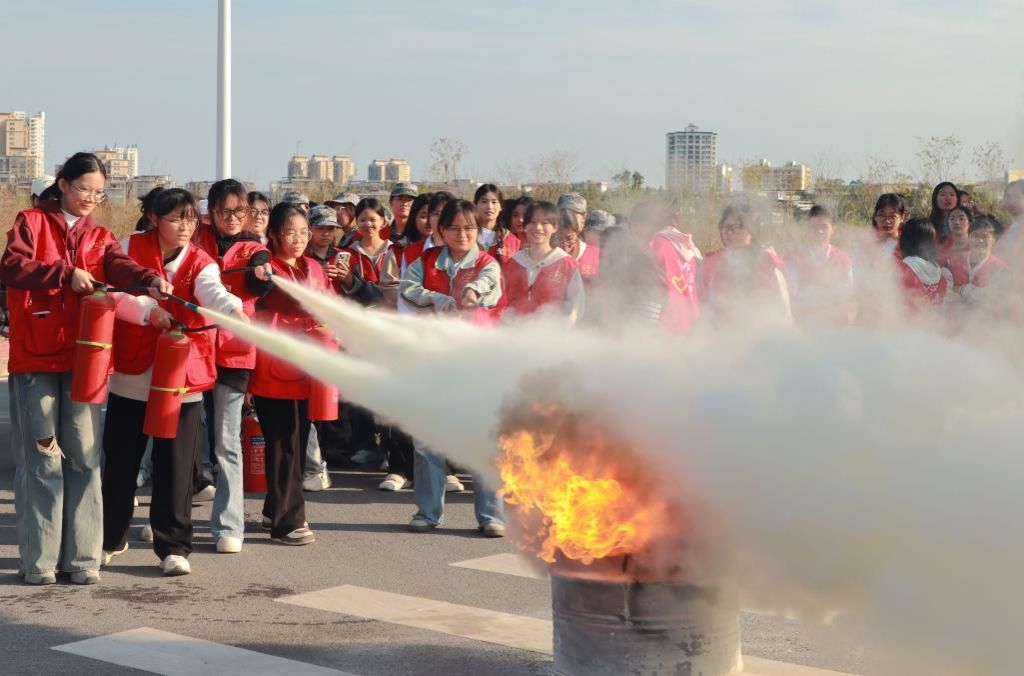 后勤管理處(保衛(wèi)處)、黨委學生工作部、會計學院、管理學院、經貿學院、財金學院、糧油康旅學院負責人,武鳴校區(qū)2024級輔導員級安全教育課任課教師,武鳴校區(qū)2024級新生,武鳴校區(qū)物業(yè)服務人員、食堂員工、商業(yè)街員工參加演練活動。