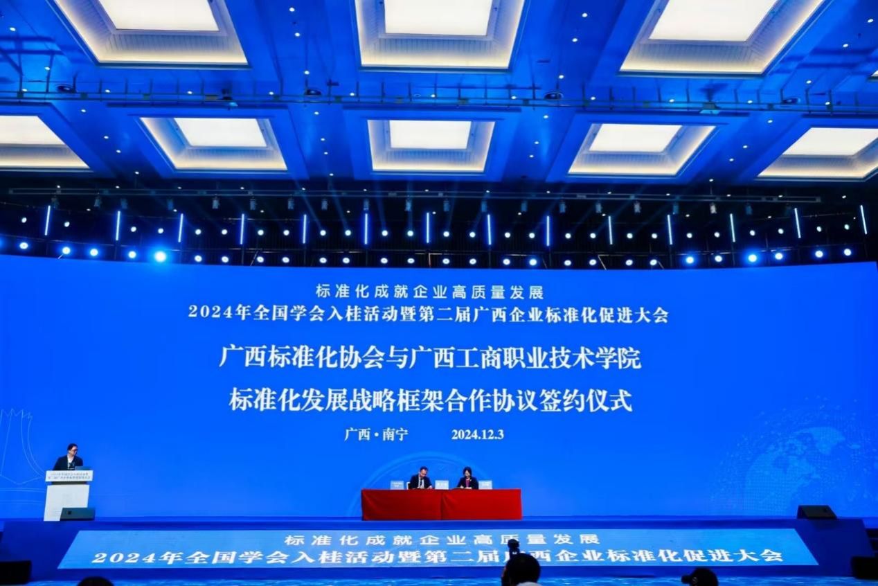 12月3日,2024年全國學(xué)會入桂活動暨第二屆廣西企業(yè)標(biāo)準(zhǔn)化促進(jìn)大會在南寧國際會展中心舉行。我校作為會校合作單位受邀參加大會。此次大會同步線上直播,逾15萬人線上參會。
