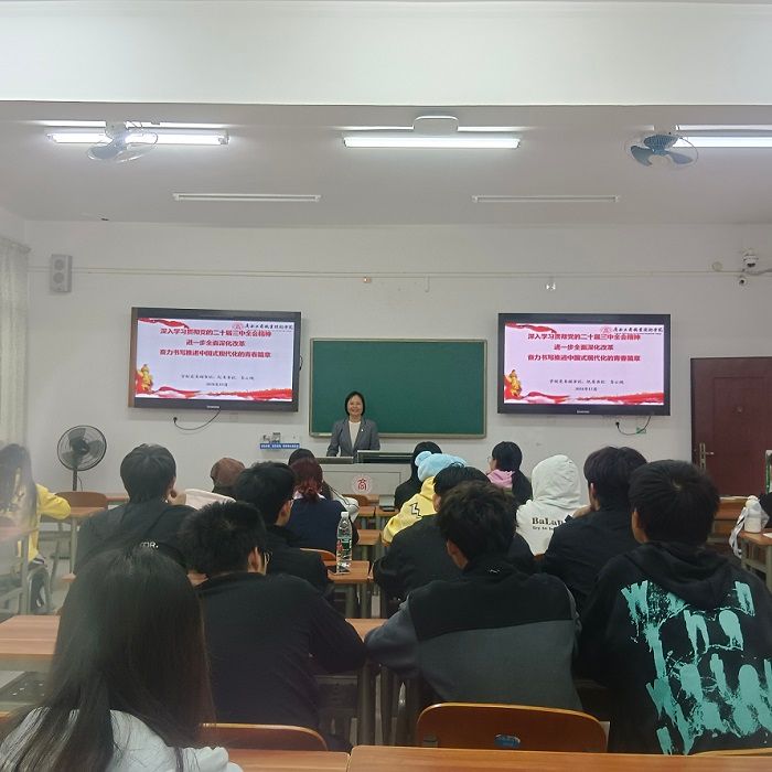 在本次專題課中,韋云鳳運(yùn)用生動(dòng)的故事,詳實(shí)的數(shù)據(jù),帶領(lǐng)同學(xué)們深入學(xué)習(xí)領(lǐng)會(huì)了黨的二十屆三中全會(huì)精神,大家表示要好好學(xué)習(xí),掌握專業(yè)本領(lǐng),為國(guó)家發(fā)展做出自己的貢獻(xiàn)。
