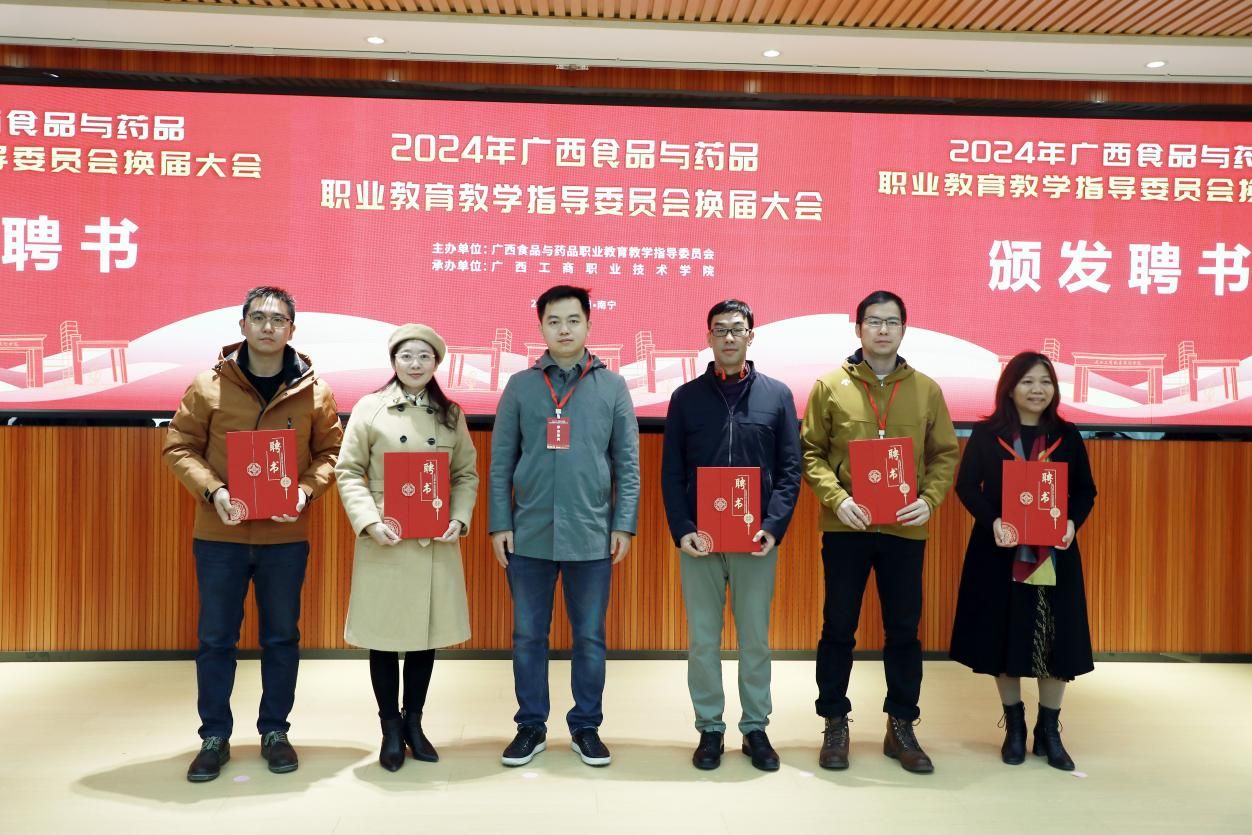 大會宣讀新一屆廣西食品與藥品職業(yè)教育教學(xué)指導(dǎo)委員會委員名單。其中,自治區(qū)糧食局副局長李國平任主任委員,學(xué)校黨委書記李維、黨委學(xué)生工作部部長譚波任副主任委員,學(xué)校副校長闕勇平任秘書長,學(xué)校糧油康旅學(xué)院李影球博士任委員。