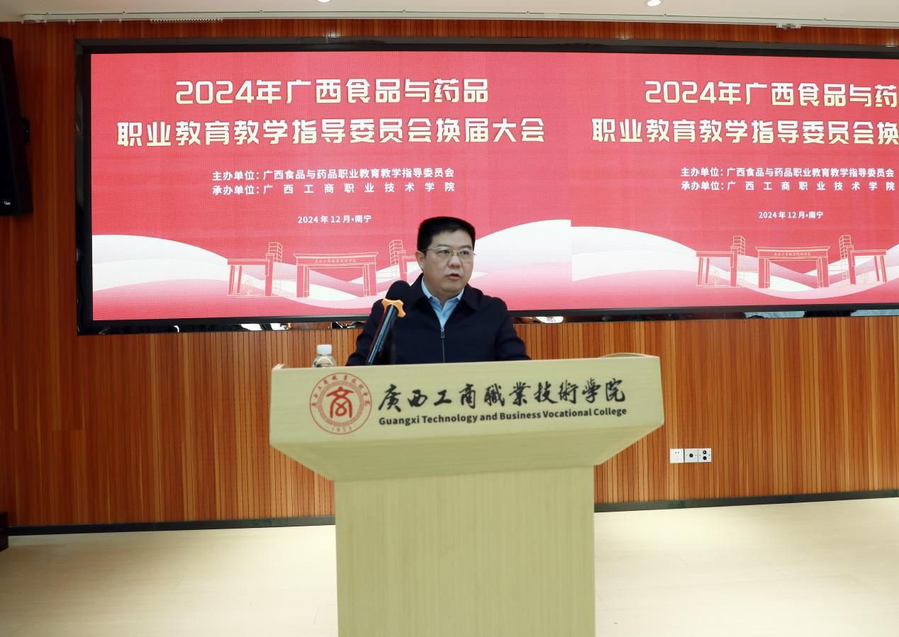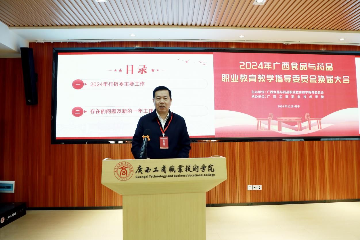 學(xué)校黨委書記、廣西食品與藥品行指委副主任委員李維作廣西食品藥品專業(yè)教育教學(xué)指導(dǎo)委員會2024年工作總結(jié)及2025年工作計劃。他表示,在自治區(qū)教育廳、自治區(qū)工信廳的領(lǐng)導(dǎo)下,廣西食品與藥品行指委統(tǒng)籌各成員單位積極配合,今年圓滿完成了行指委工作計劃和行動計劃提出的階段性任務(wù),教育教學(xué)質(zhì)量顯著提升。李維指出,新一屆行指委將緊緊圍繞國家深化教育教學(xué)改革決策部署,切實推動食品藥品職業(yè)教育取得新成效。一是進一步加強工作信息報告機制,完善行指委委員的工作職責(zé),促進各單位建設(shè)經(jīng)驗交流。二是要做好頂層設(shè)計,打造高水平專業(yè)群;加強校企合作,建設(shè)一流核心課程;完善管理機制,校企雙元開發(fā)新形態(tài)教材;進培養(yǎng)結(jié)合,建設(shè)高水平雙師隊伍;深化產(chǎn)教融合,打造行業(yè)產(chǎn)教融合共同體;推動職教出海,為“一帶一路”建設(shè)獻“糧”策。