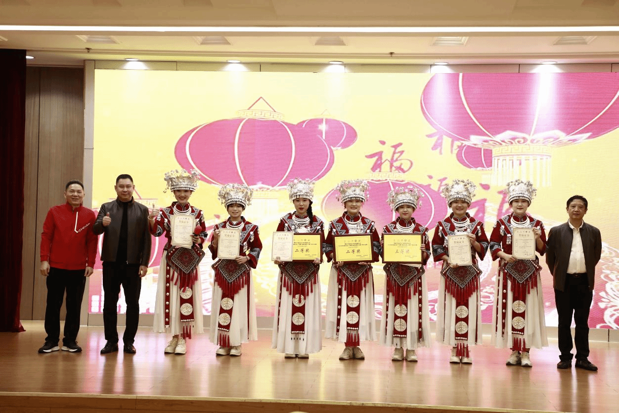(安仲文副書記和陳寧春副校長為2024年全國婦女廣場舞(健身操舞)比賽廣西站獲獎教師頒獎)