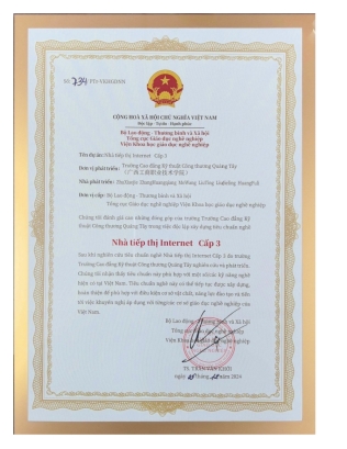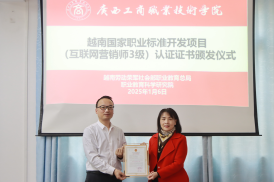 據(jù)悉,為推動中越兩國職業(yè)教育交流與合作,廣西現(xiàn)代東盟教育研究院組織發(fā)起了“越南國家職業(yè)標(biāo)準(zhǔn)共建項(xiàng)目”。我校經(jīng)貿(mào)學(xué)院項(xiàng)目團(tuán)隊(duì)充分發(fā)揮市場營銷高水平專業(yè)群的優(yōu)勢,于2024年7月份答辯獲批立項(xiàng)獨(dú)立開發(fā)互聯(lián)網(wǎng)營銷師3級標(biāo)準(zhǔn)。立項(xiàng)后便進(jìn)入了緊張的建設(shè)階段,經(jīng)過共同努力,在學(xué)校及各方的支持下,項(xiàng)目團(tuán)隊(duì)于2024年12月成功完成了“互聯(lián)網(wǎng)營銷師”3級職業(yè)標(biāo)準(zhǔn)的建設(shè),并順利通過驗(yàn)收,獲得了越南勞動榮軍社會部職業(yè)教育總局職業(yè)教育科學(xué)研究院頒發(fā)的職業(yè)標(biāo)準(zhǔn)證書。該職業(yè)標(biāo)準(zhǔn)將繼續(xù)被開發(fā)和完善,以確保該標(biāo)準(zhǔn)具備實(shí)施和培訓(xùn)條件,并向越南各職業(yè)教育機(jī)構(gòu)推廣應(yīng)用。這一成果標(biāo)志著我校市場營銷高水平專業(yè)群在打造面向東盟的職業(yè)教育開放合作新高地的目標(biāo)上又堅(jiān)實(shí)地邁進(jìn)了重要一步。