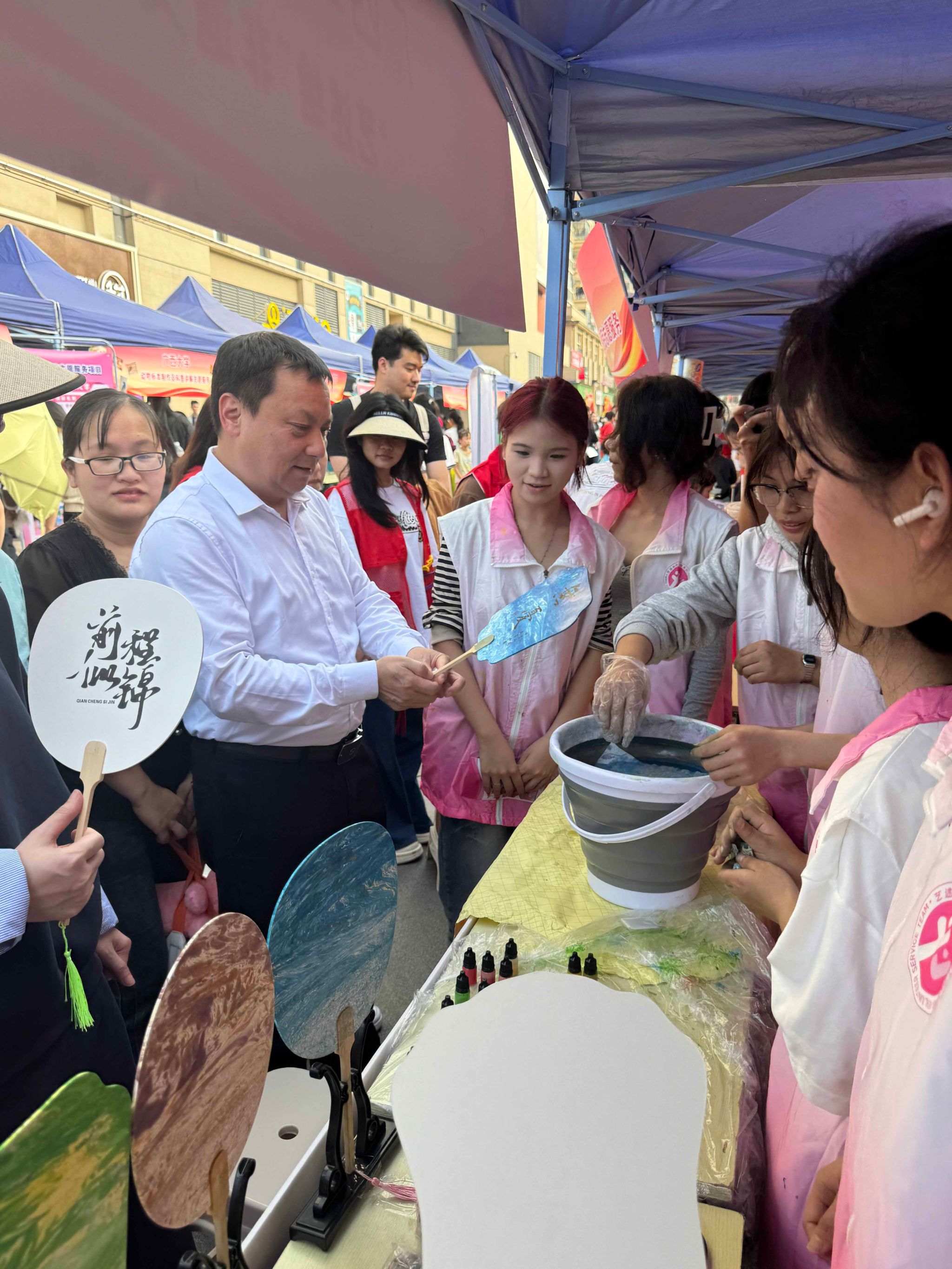 南寧市社會(huì)工作部副部長(zhǎng)陳仕成來(lái)到學(xué)?!八囀隼L”青年志愿服務(wù)隊(duì)的攤位進(jìn)行活動(dòng)體驗(yàn)。他對(duì)我校志愿者的熱情服務(wù)和創(chuàng)新精神給予了高度評(píng)價(jià),并表示這樣的活動(dòng)不僅有助于傳承和弘揚(yáng)傳統(tǒng)文化,還能夠增強(qiáng)市民的志愿服務(wù)意識(shí),推動(dòng)社會(huì)文明進(jìn)步。