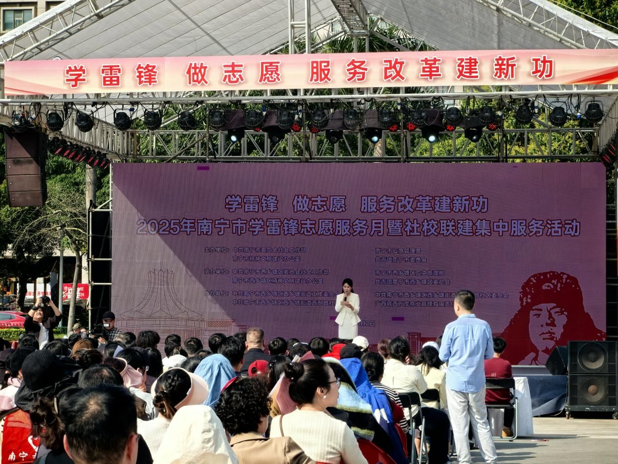 在第62個(gè)學(xué)雷鋒紀(jì)念日來(lái)臨之際,為更好地弘揚(yáng)雷鋒精神,推動(dòng)志愿服務(wù)活動(dòng)的廣泛開(kāi)展,2025年3月2日,中共南寧市委員會(huì)社會(huì)工作部聯(lián)合相關(guān)部門(mén),在西鄉(xiāng)塘區(qū)成功舉辦“2025年南寧市三月學(xué)雷鋒活動(dòng)月集中志愿服務(wù)暨社校聯(lián)建洽談活動(dòng)”。我校信息與設(shè)計(jì)學(xué)院“藝述繪”青年志愿服務(wù)隊(duì)作為受邀單位參與活動(dòng)。