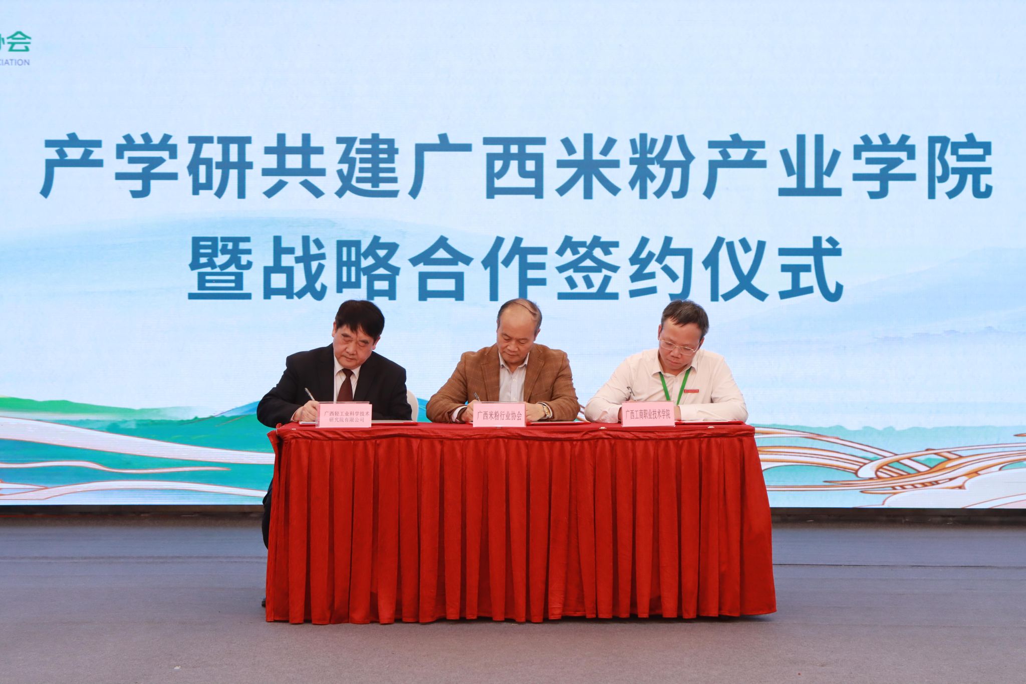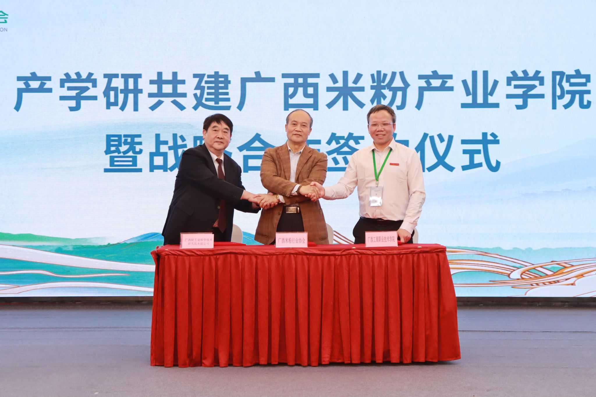 春鳥鳴新曲,新夢展宏圖。2025年3月21日,廣西米粉行業(yè)協(xié)會成立大會暨第一次會員大會在南寧舉行,我校當(dāng)選常務(wù)副理事長單位,并與廣西米粉行業(yè)協(xié)會和廣西輕工業(yè)科學(xué)技術(shù)研究院簽訂產(chǎn)學(xué)研合作協(xié)議,共同組建廣西米粉產(chǎn)業(yè)學(xué)院。廣西米粉產(chǎn)業(yè)學(xué)院以推動產(chǎn)學(xué)研深度開展產(chǎn)教融合、實(shí)現(xiàn)共建共贏為目的,為廣西米粉產(chǎn)業(yè)的持續(xù)健康發(fā)展提供強(qiáng)有力的人才支撐和智力支持。