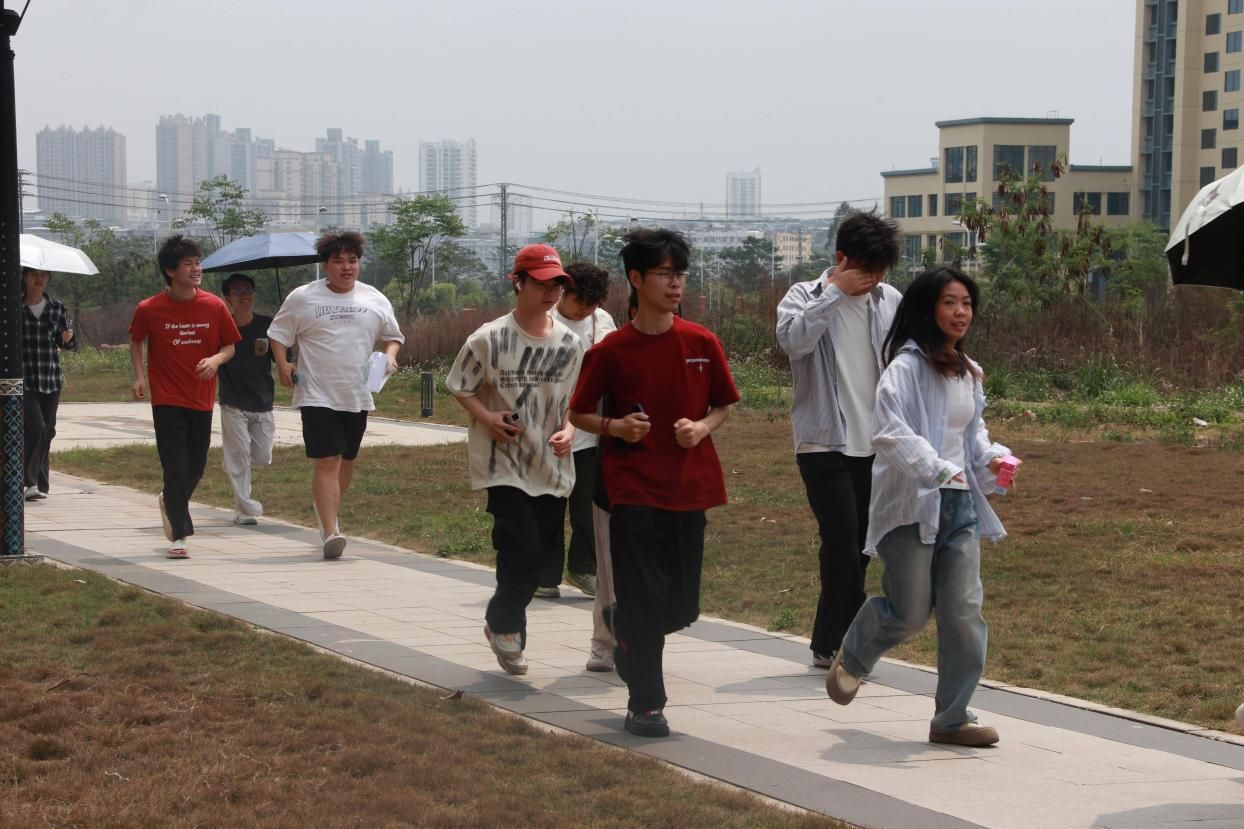 隨著地震警報(bào)響起,全體學(xué)生立即停止活動(dòng),迅速就近躲避于桌椅邊、墻角處,雙手護(hù)頭,模擬強(qiáng)震發(fā)生時(shí)的緊急避險(xiǎn)場景。疏散警報(bào)拉響后,學(xué)生在志愿者和教師的引導(dǎo)下,沿預(yù)定疏散通道有序撤離至足球場集合點(diǎn)。各班班長隨即清點(diǎn)人數(shù)并上報(bào),全程安全、快速、有序,展現(xiàn)了學(xué)校師生對(duì)安全問題的重視和高效的團(tuán)隊(duì)協(xié)作能力。