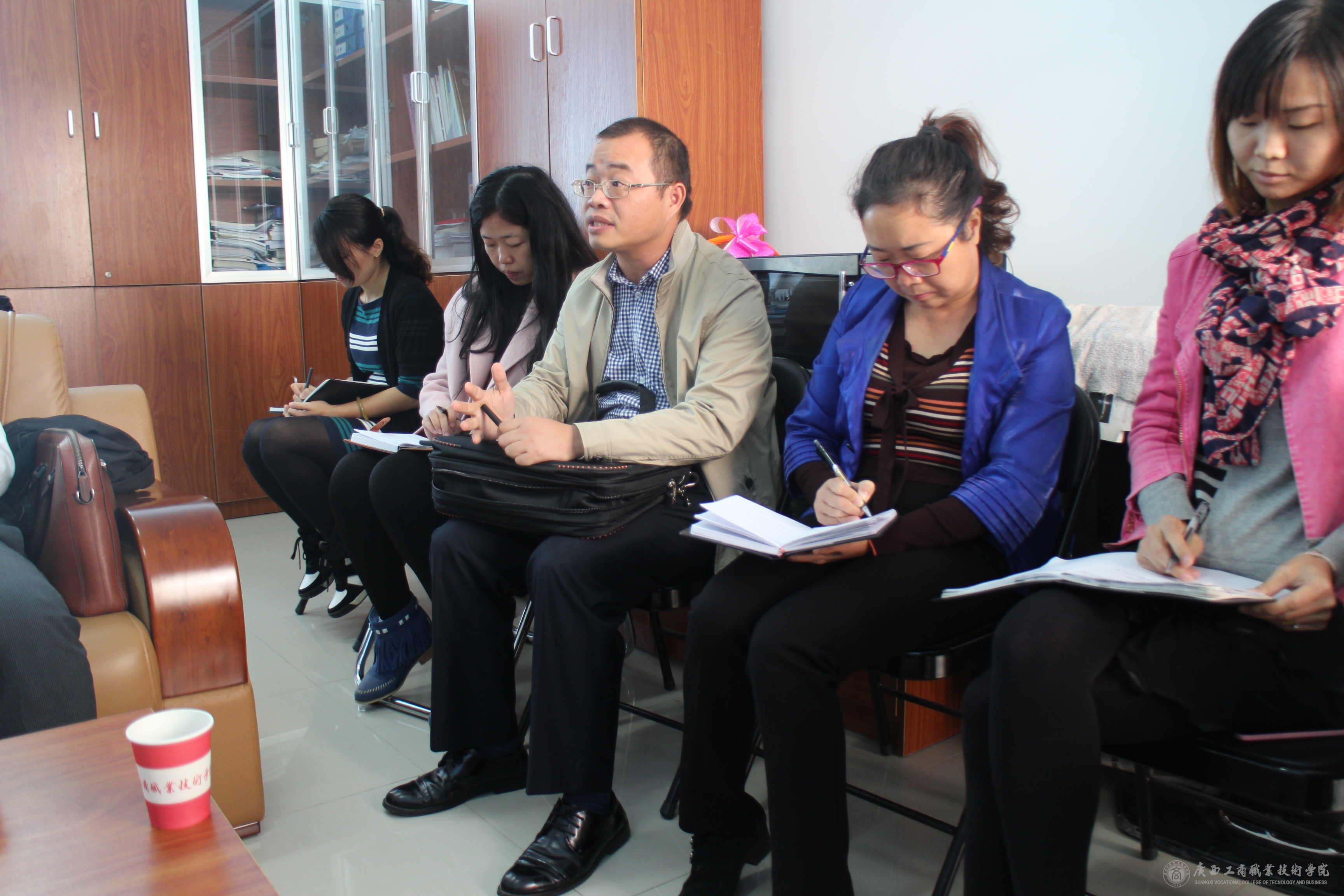 根據(jù)自治區(qū)黨委組織部《關(guān)于在“三嚴(yán)三實”專題教育第三專題學(xué)習(xí)研討前開展調(diào)查研究的通知》(桂組通字〔2015〕63號)精神和學(xué)院黨委有關(guān)工作安排,2015年11月2日上午,陳杰院長帶領(lǐng)黨委組織部(學(xué)院人事處)、教務(wù)科研處的同志一行3人到聯(lián)系點經(jīng)管系開展調(diào)研工作。
