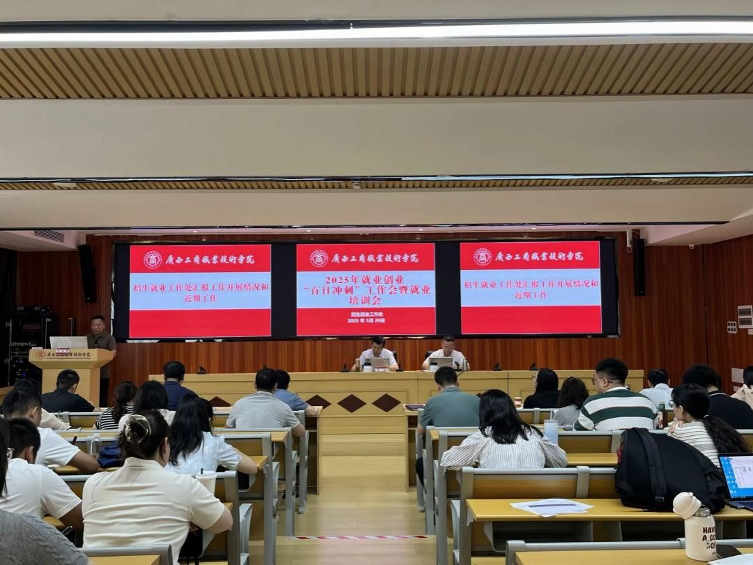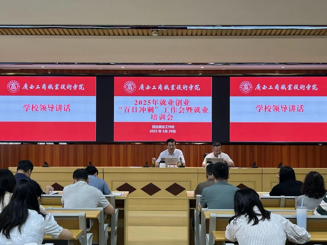 凝心聚力促就業(yè),攻堅克難啟新程。為深入貫徹落實黨中央、國務院關于高校畢業(yè)生就業(yè)創(chuàng)業(yè)工作的決策部署,全力推進2025屆畢業(yè)生高質量充分就業(yè),5月29日上午,學校召開2025年就業(yè)創(chuàng)業(yè)“百日沖刺”工作會暨就業(yè)培訓會。學校黨委書記李維,副校長闕勇平,各二級學院黨總支書記、院長、分管就業(yè)工作副院長、畢業(yè)班輔導員、就業(yè)干事及招生就業(yè)工作處全體工作人員參加會議。