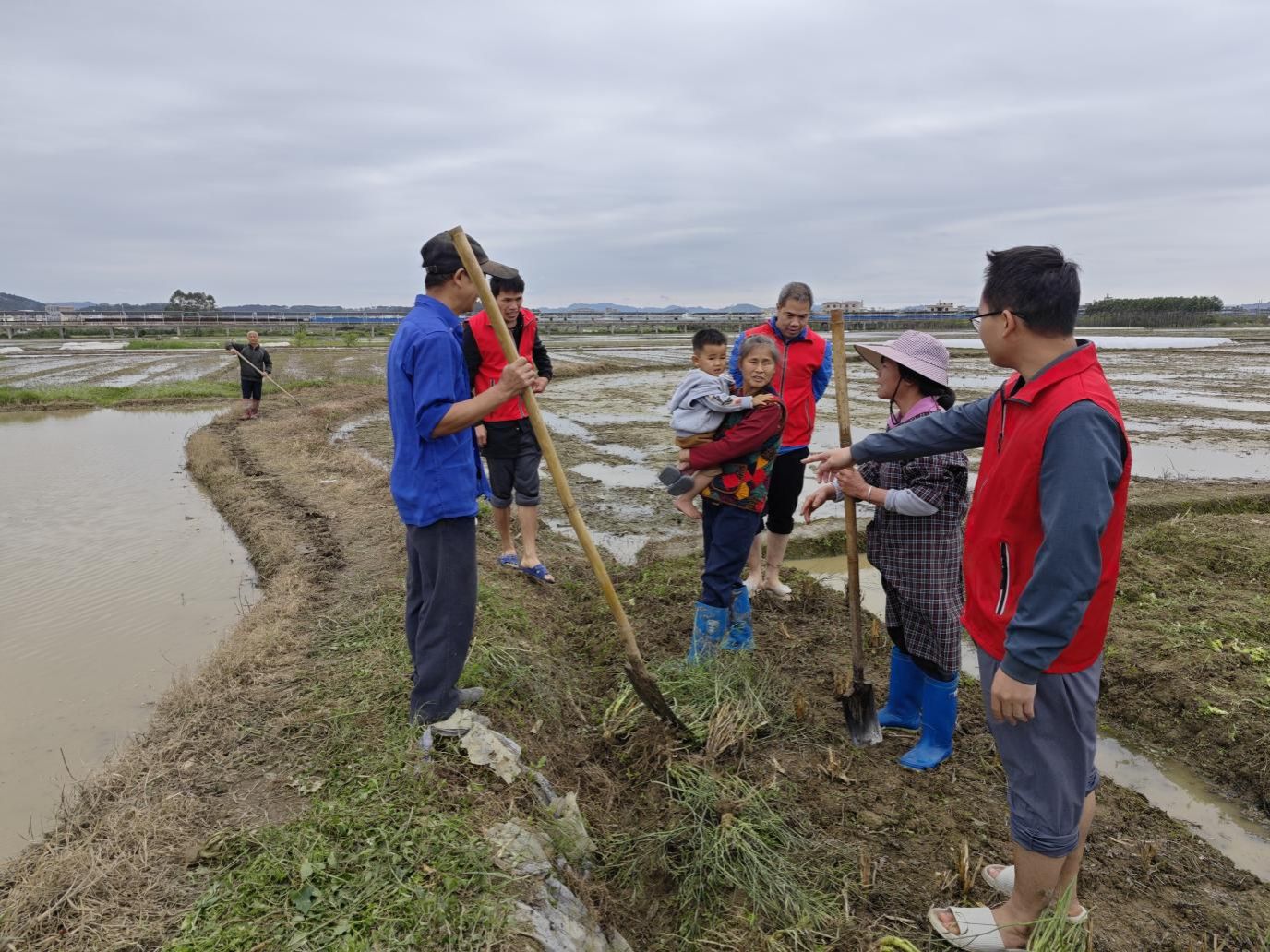 (莫小強(qiáng)(右一)與四樂(lè)村駐村工作隊(duì)到田間和群眾了解春耕情況)