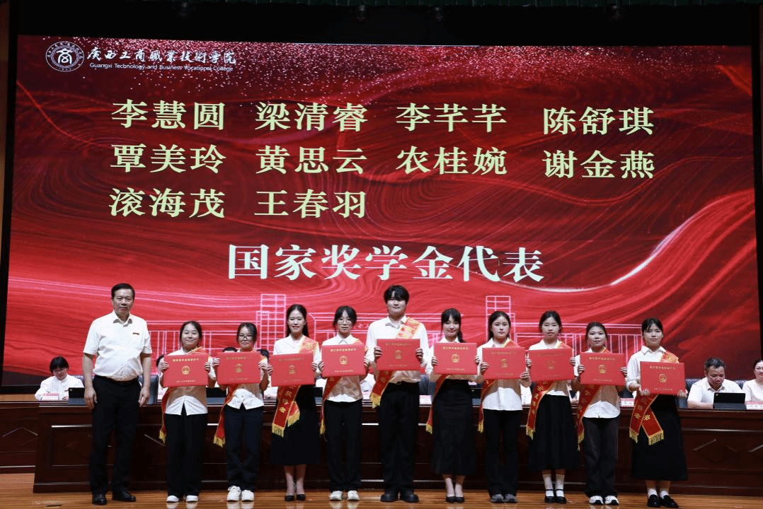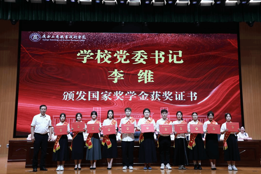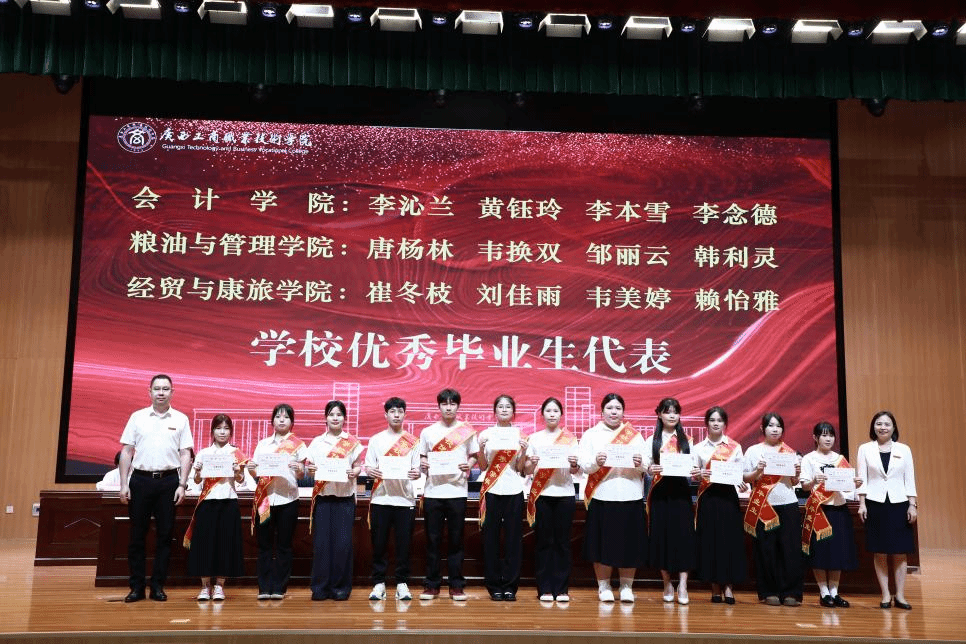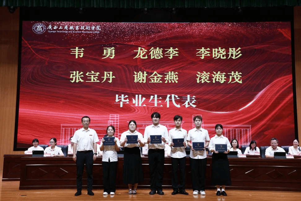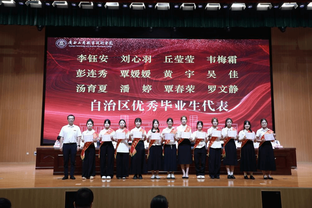典禮上,闕勇平宣讀2025年畢業(yè)生文件,韋云鳳宣讀優(yōu)秀畢業(yè)生表彰文件,陳寧春宣讀榮獲國(guó)家獎(jiǎng)學(xué)金優(yōu)秀學(xué)生表彰文件。李維為國(guó)家獎(jiǎng)學(xué)金獲獎(jiǎng)學(xué)生代表頒發(fā)榮譽(yù)證書,劉進(jìn)為自治區(qū)級(jí)“優(yōu)秀畢業(yè)生”代表頒發(fā)榮譽(yù)證書、為畢業(yè)生代表頒發(fā)畢業(yè)證書,韋云鳳、陳寧春、闕勇平、鄭華為校級(jí)“優(yōu)秀畢業(yè)生”代表頒發(fā)榮譽(yù)證書。