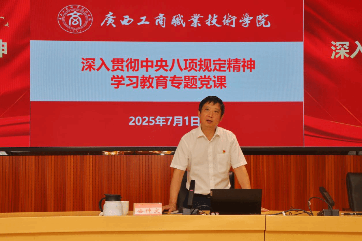 7月1日下午,學(xué)校黨委副書記安仲文在鵬飛校區(qū)2145會議室,為分管部門及所聯(lián)系學(xué)院的黨員教師講授學(xué)習(xí)教育專題黨課。此次黨課結(jié)合“七一”表彰大會后的重要時機(jī),旨在進(jìn)一步強(qiáng)化黨員干部的紀(jì)律意識,推動中央八項(xiàng)規(guī)定精神入腦入心。