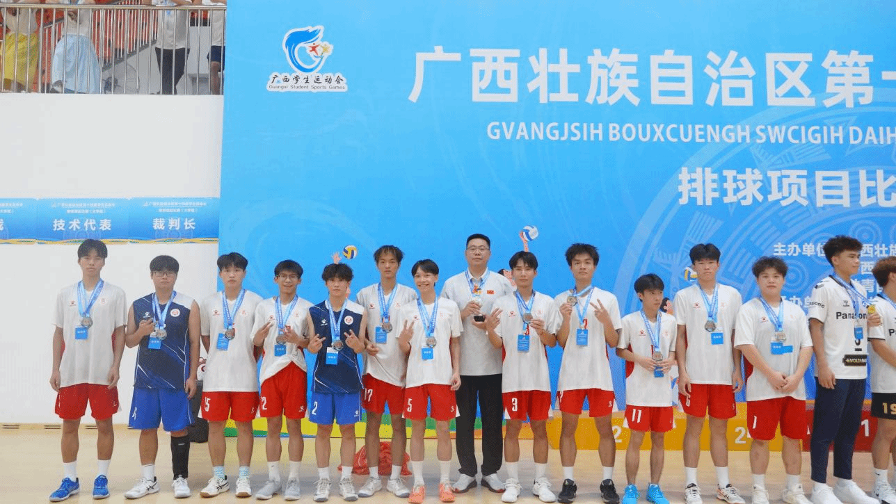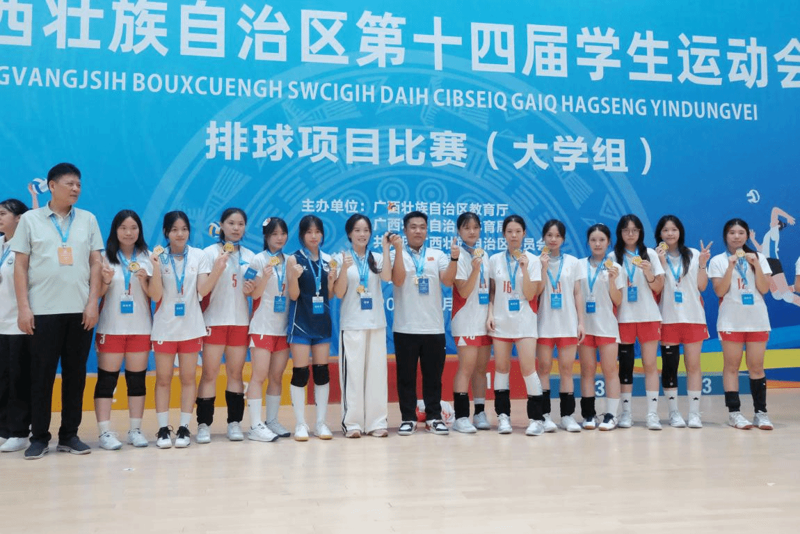 2025年7月10日,廣西壯族自治區(qū)第十四屆學生運動會排球項目(大學組)在桂林醫(yī)科大學體育館燃情開賽。我校代表隊由王秀美、凌展旭老師執(zhí)教女排,鄧淇元、韋武成老師執(zhí)教男排,范金明老師擔任后勤保障,24名運動員歷經(jīng)鏖戰(zhàn),最終斬獲高職高專女子組冠軍、男子組亞軍的輝煌戰(zhàn)績!
