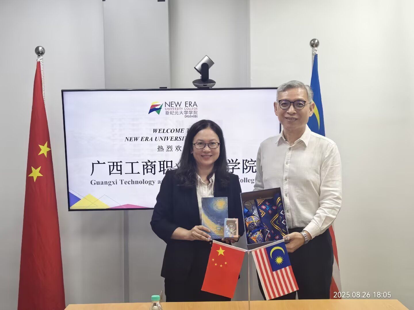 訪問新紀元大學學院時,代表團與該校校長莫順宗教授、副校長鄭詩儐副教授、國際教育學院助理院長廖筱紋副教授、國際學生招生辦公室主任彭會婷高級講師等校方代表座談交流。雙方通過視頻展示辦學特色,重點探討中國-東盟現(xiàn)代工匠學院共建、國際化課程開發(fā)、教育人才聯(lián)合培養(yǎng)、學術及師生交流、學歷提升等合作方向。兩校專業(yè)設置契合度較高,為合作奠定良好基礎,雙方達成合作意向,并計劃后續(xù)簽訂框架協(xié)議,實現(xiàn)資源共享與優(yōu)勢互補。