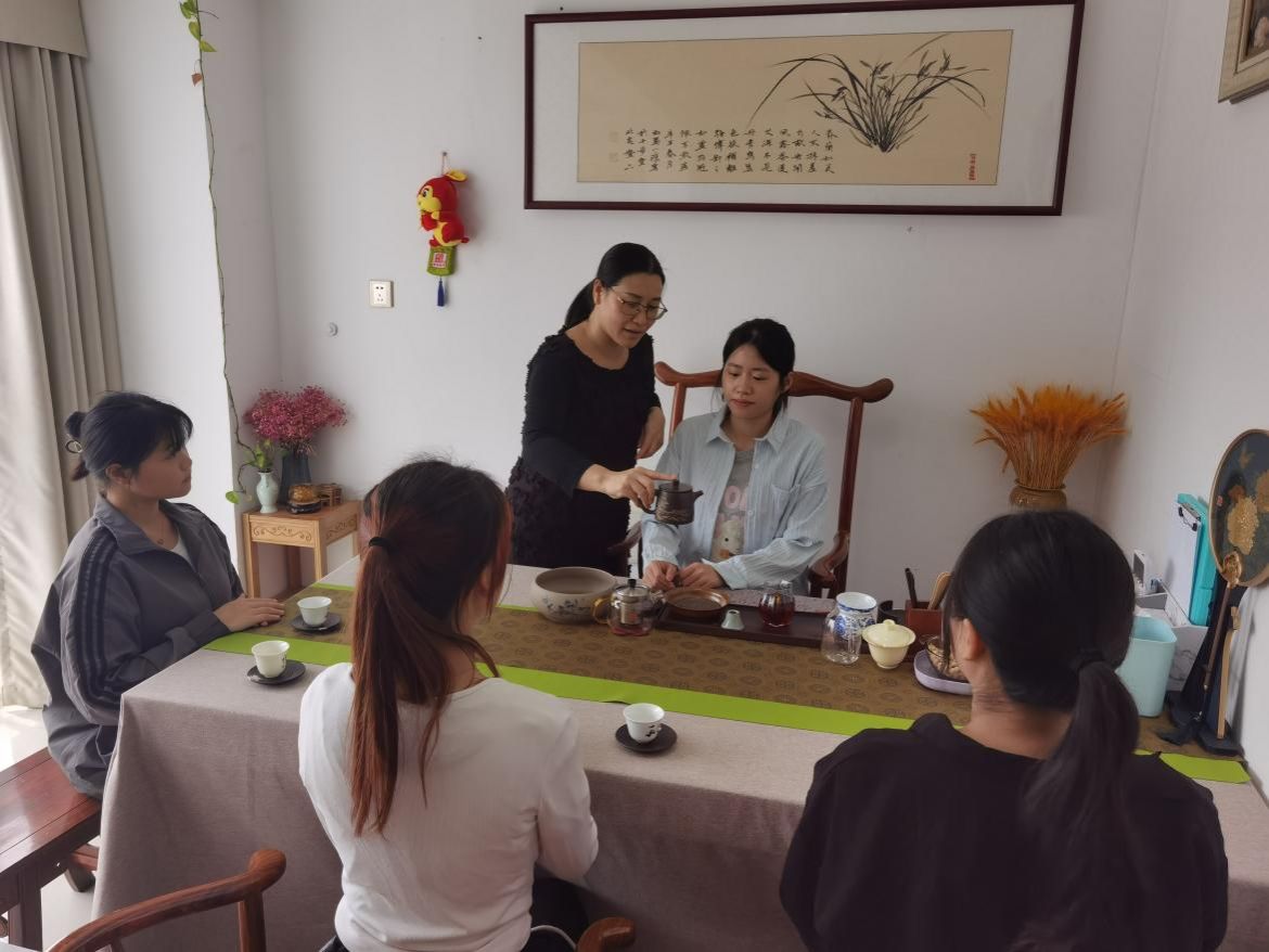 (莫小芳給外國友人講授中國傳統(tǒng)茶文化)