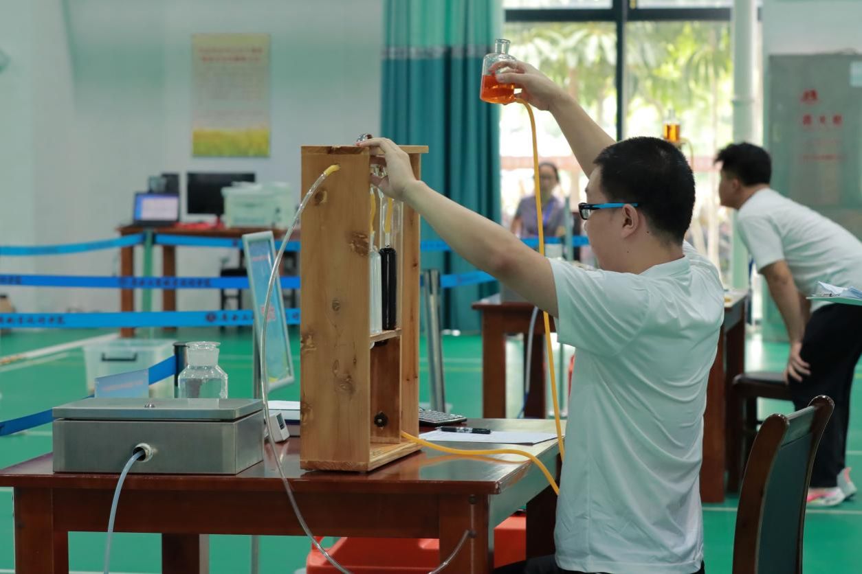 本次競賽緊密對接全國競賽標(biāo)準(zhǔn)和要求,設(shè)(糧油)倉儲管理員和農(nóng)產(chǎn)品食品檢驗員兩個職業(yè)(職業(yè)方向),分設(shè)職工組和學(xué)生組。競賽進(jìn)行理論知識考試和技能操作考評項目比拼,兩個項目分?jǐn)?shù)加權(quán)計算確定總成績。其中(糧油)倉儲管理員實操競賽內(nèi)容為計算機(jī)糧情檢測與分析、檢查氣調(diào)儲糧殺蟲抑菌效果、風(fēng)力測定,農(nóng)產(chǎn)品食品檢驗員實操競賽內(nèi)容為標(biāo)準(zhǔn)溶液配制與標(biāo)定、糧食驗質(zhì)定等。