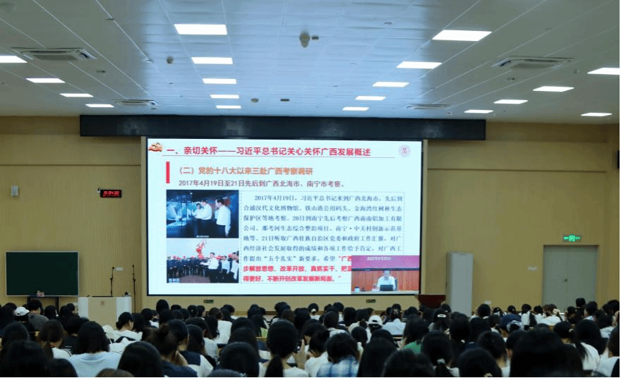 李維書記在宣講報告中指出,習(xí)近平總書記對廣西工作高度重視,多次親臨廣西考察調(diào)研,多次就廣西工作發(fā)表重要講話、作出重要指示批示,深刻闡明了事關(guān)廣西發(fā)展全局的根本性、方向性、戰(zhàn)略性問題,為建設(shè)新時代壯美廣西樹立了新的歷史坐標、提供了新的戰(zhàn)略指引。他強調(diào),學(xué)校經(jīng)過70多年的接續(xù)奮斗,各項建設(shè)走上高質(zhì)量發(fā)展的快車道。學(xué)校黨委將進一步全面深化改革、開拓創(chuàng)新、砥礪奮進,牢固樹立“實干為要、創(chuàng)新為魂,用業(yè)績說話、讓人民評價”的鮮明導(dǎo)向,圍繞落實立德樹人根本任務(wù),堅持提質(zhì)量、強效能、穩(wěn)保障、惠民生,提高辦學(xué)水平、增強綜合實力、實現(xiàn)學(xué)校高質(zhì)量發(fā)展。他勉勵學(xué)校學(xué)子,要牢記習(xí)近平總書記殷切囑托,堅定不移聽黨話、跟黨走,爭做有理想、敢擔當、能吃苦、肯奮斗的新時代好青年,在推進強國建設(shè)、民族復(fù)興偉業(yè)中展現(xiàn)作為、彰顯風采、貢獻力量,奮力書寫中國式現(xiàn)代化廣西篇章的青春答卷。