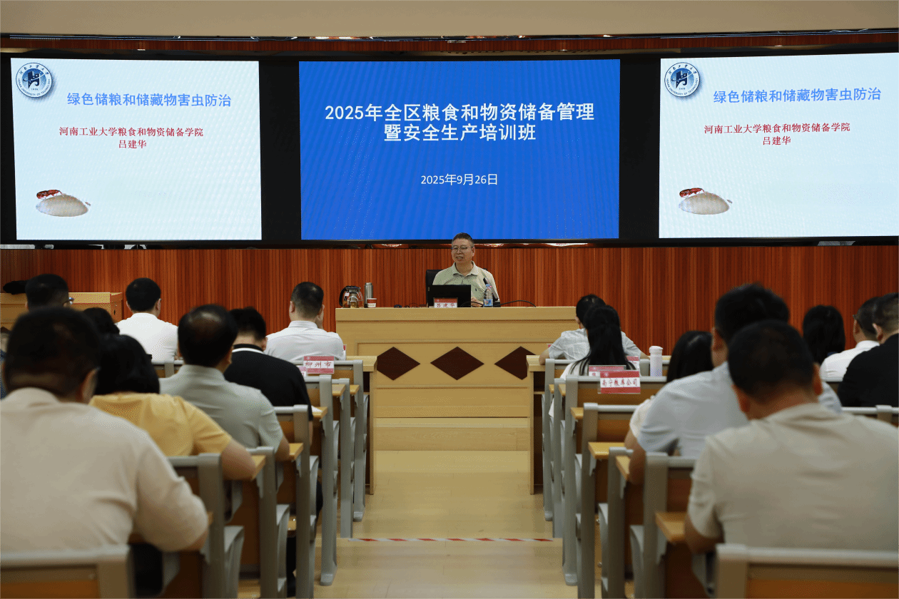 9月24日至26日,2025年全區(qū)糧食和物資儲備管理暨安全生產(chǎn)培訓班在我校舉辦,共有百余位來自全區(qū)糧儲系統(tǒng)的職工骨干參加此次培訓班。培訓班聚焦糧食倉儲規(guī)范化管理、豬肉儲備安全保障及安全生產(chǎn)三大核心任務,通過“理論授課+現(xiàn)場觀摩+經(jīng)驗交流”的多元化形式,為全區(qū)糧儲系統(tǒng)骨干力量充電賦能,夯實糧食和物資儲備安全根基。