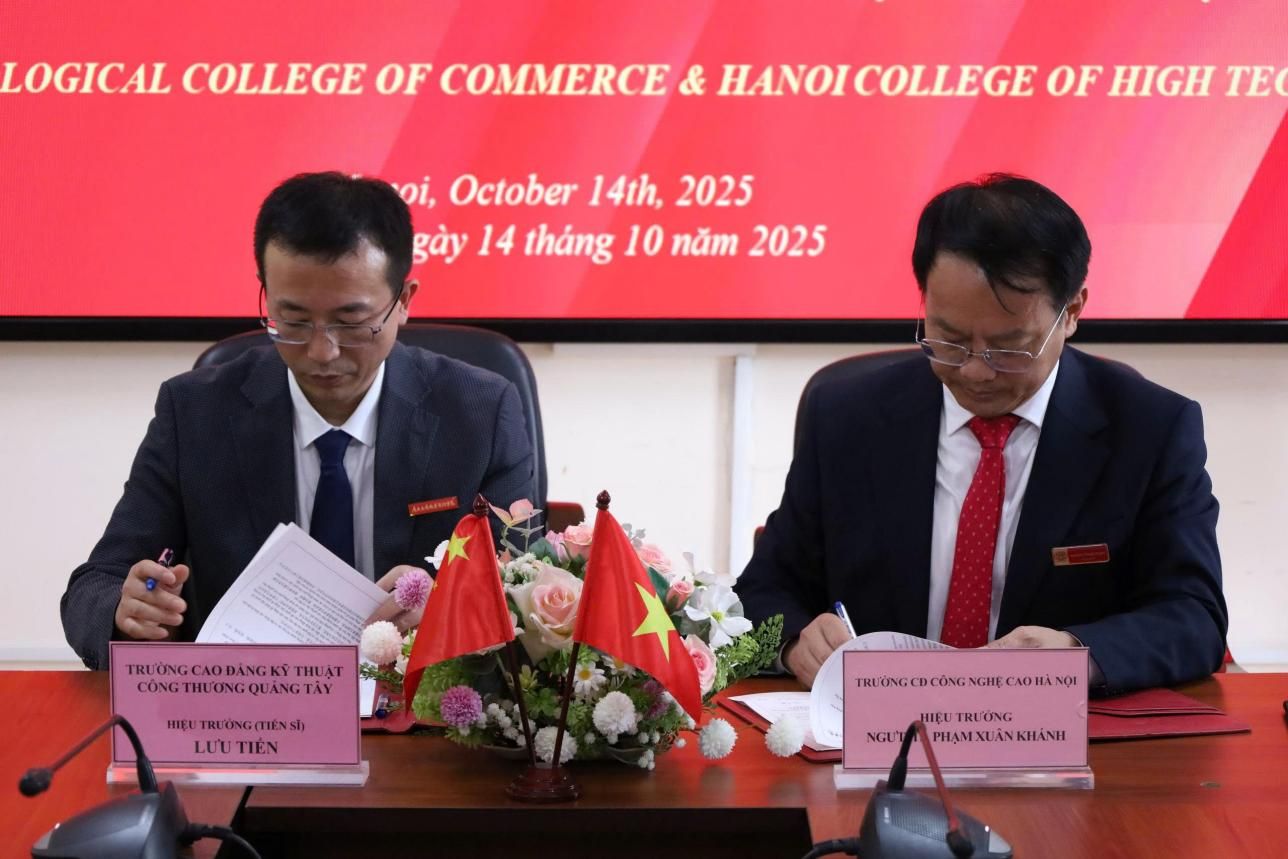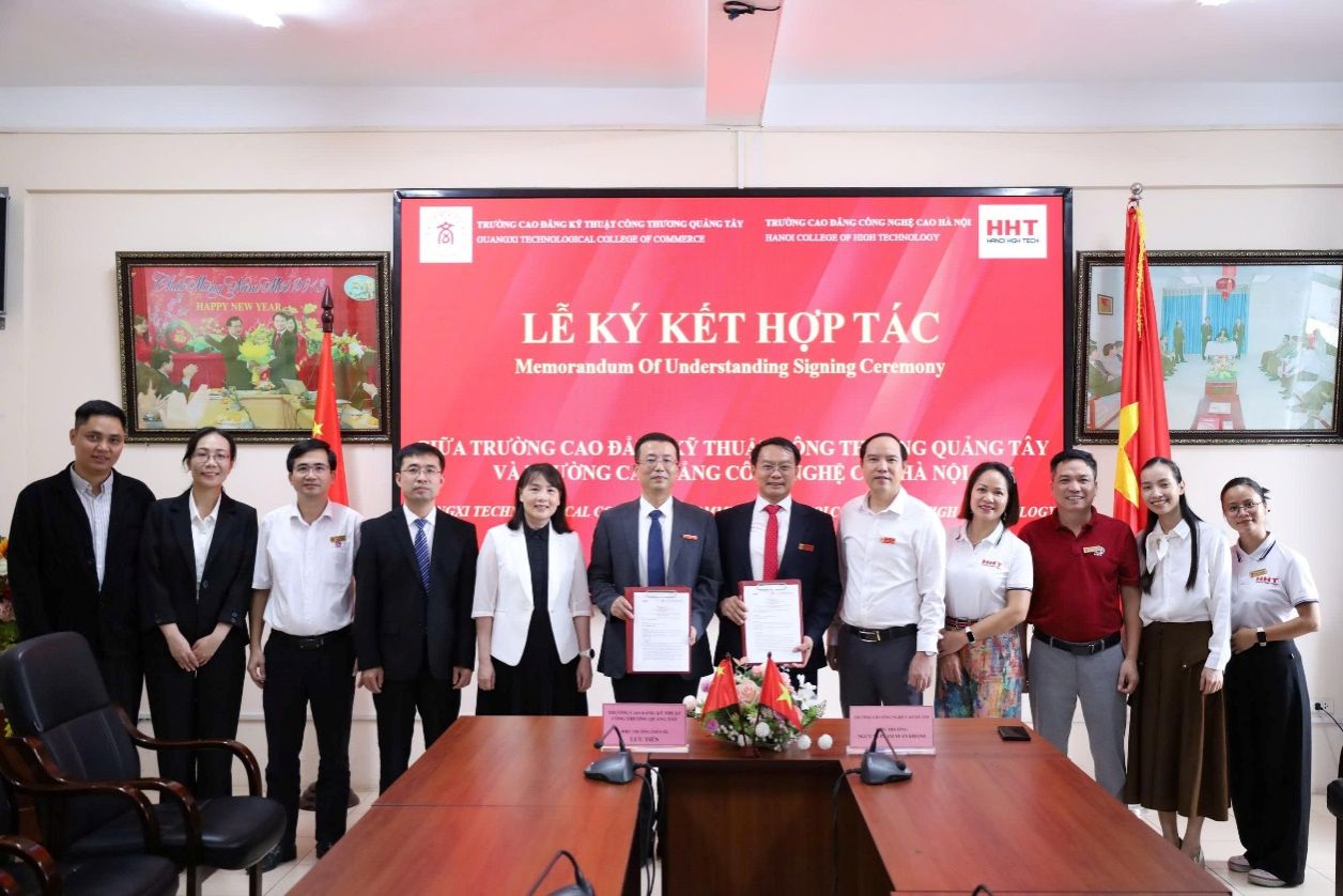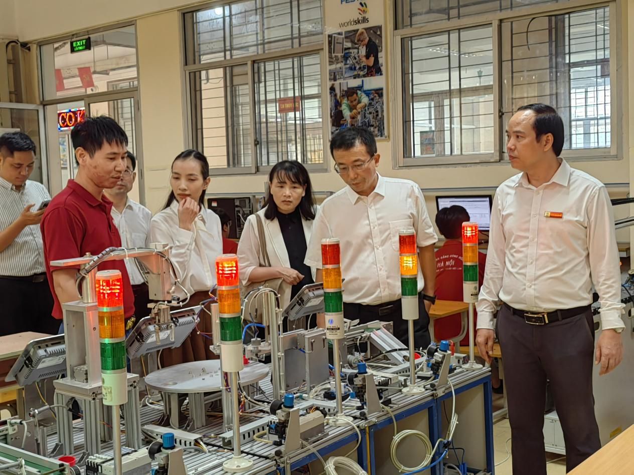 在河內(nèi)高科技學院,代表團受到校長范春慶、副校長黎名光等校方代表的熱情接待。雙方通過視頻展示各自辦學特色,并就職業(yè)教育創(chuàng)新發(fā)展、師生交流項目、“中文+專業(yè)技能”課程開發(fā)、共建中國-東盟現(xiàn)代工匠學院等議題進行了深入研討。為進一步深化合作,推動中越院校在教育教學經(jīng)驗共享、人才聯(lián)合培養(yǎng)等方面協(xié)同發(fā)展,雙方正式簽署合作備忘錄。座談會后,代表團參觀了該校校園及實驗實訓基地,深入了解其教學設(shè)施與實踐教學模式。