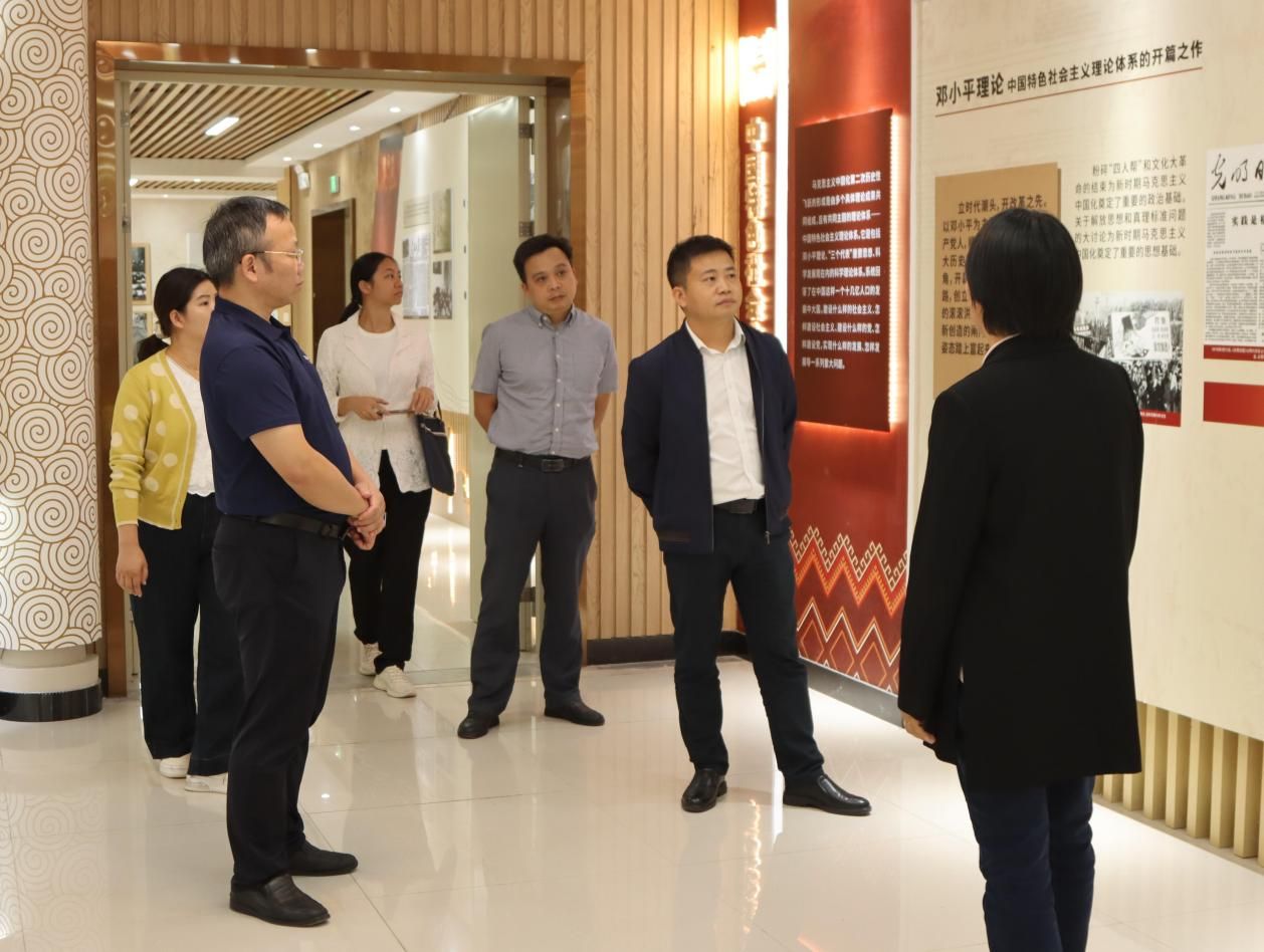 在闕勇平副校長的帶領(lǐng)下,梁杰副校長一行參觀了我校習近平新時代中國特色社會主義思想教育基地,實地了解了我校思想政治教育基地的建設(shè)和運行情況。