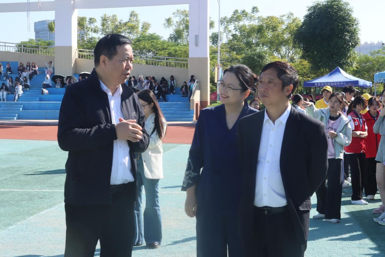 學(xué)校領(lǐng)導(dǎo)高度重視本屆運(yùn)動會,賽事期間到現(xiàn)場檢查指導(dǎo),統(tǒng)籌保障各項賽程有序推進(jìn),為運(yùn)動健兒加油鼓勁。