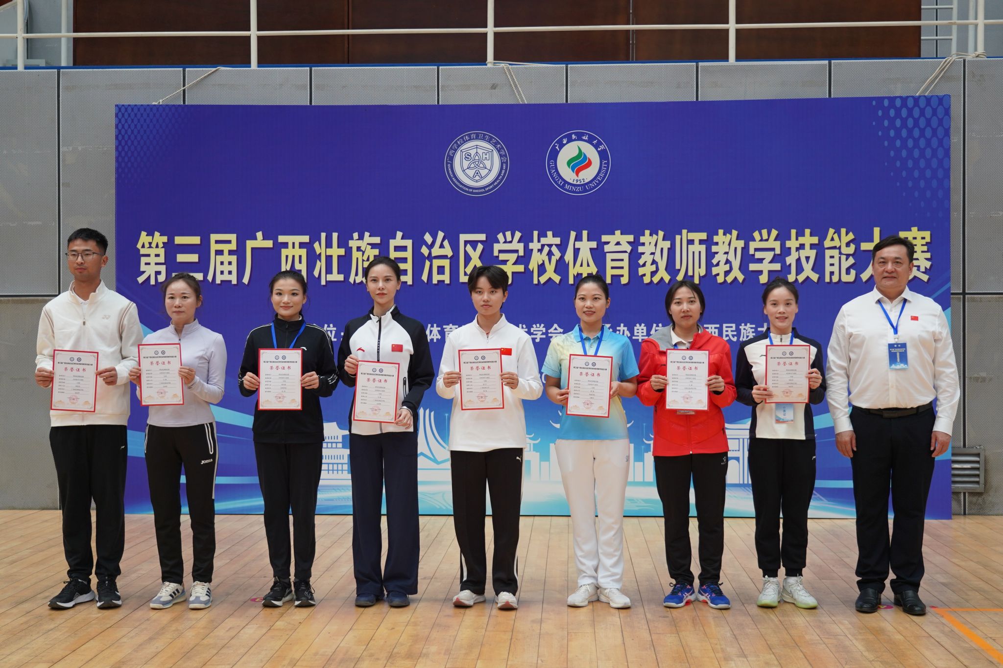 近日,我校通識(shí)教育學(xué)院體育教師團(tuán)隊(duì)在第三屆廣西壯族自治區(qū)學(xué)校體育教師教學(xué)技能大賽中憑借扎實(shí)的教學(xué)基本功、先進(jìn)的教學(xué)理念以及出色的現(xiàn)場(chǎng)表現(xiàn),在眾多參賽選手中脫穎而出,取得了優(yōu)異成績(jī)。其中,王秀美老師榮獲高職高專組術(shù)科綜合技能一等獎(jiǎng),丘文婷老師榮獲高職高專組術(shù)科綜合技能二等獎(jiǎng)。