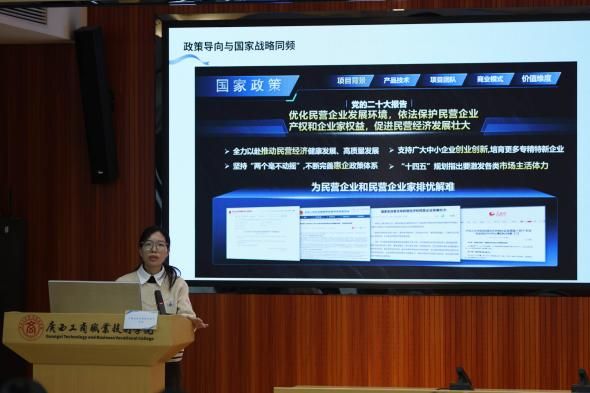 南寧師范大學創(chuàng)新創(chuàng)業(yè)學院副院長韋良教授應邀作主旨講座。韋良教授緊密結合輔導員職業(yè)發(fā)展路徑,系統(tǒng)闡述了如何將雙創(chuàng)指導與個人成長深度融合。他提出,項目選題應緊扣國家戰(zhàn)略與地方特色,倡導“真做實干”,推動項目實體化運作與知識產權布局;在指導策略上,需善用輔導員貼近學生的優(yōu)勢,挖掘整合資源,構建跨學科指導團隊,并注重通過賽事切實促進學生綜合能力發(fā)展與生涯規(guī)劃。他的分享為輔導員們提供了從理念更新到實踐方法的系統(tǒng)性指引。
