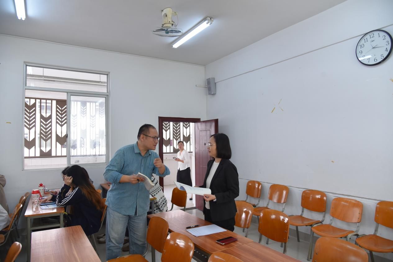 學校黨委副書記、紀委書記韋云鳳進入袁磊老師課堂聽課