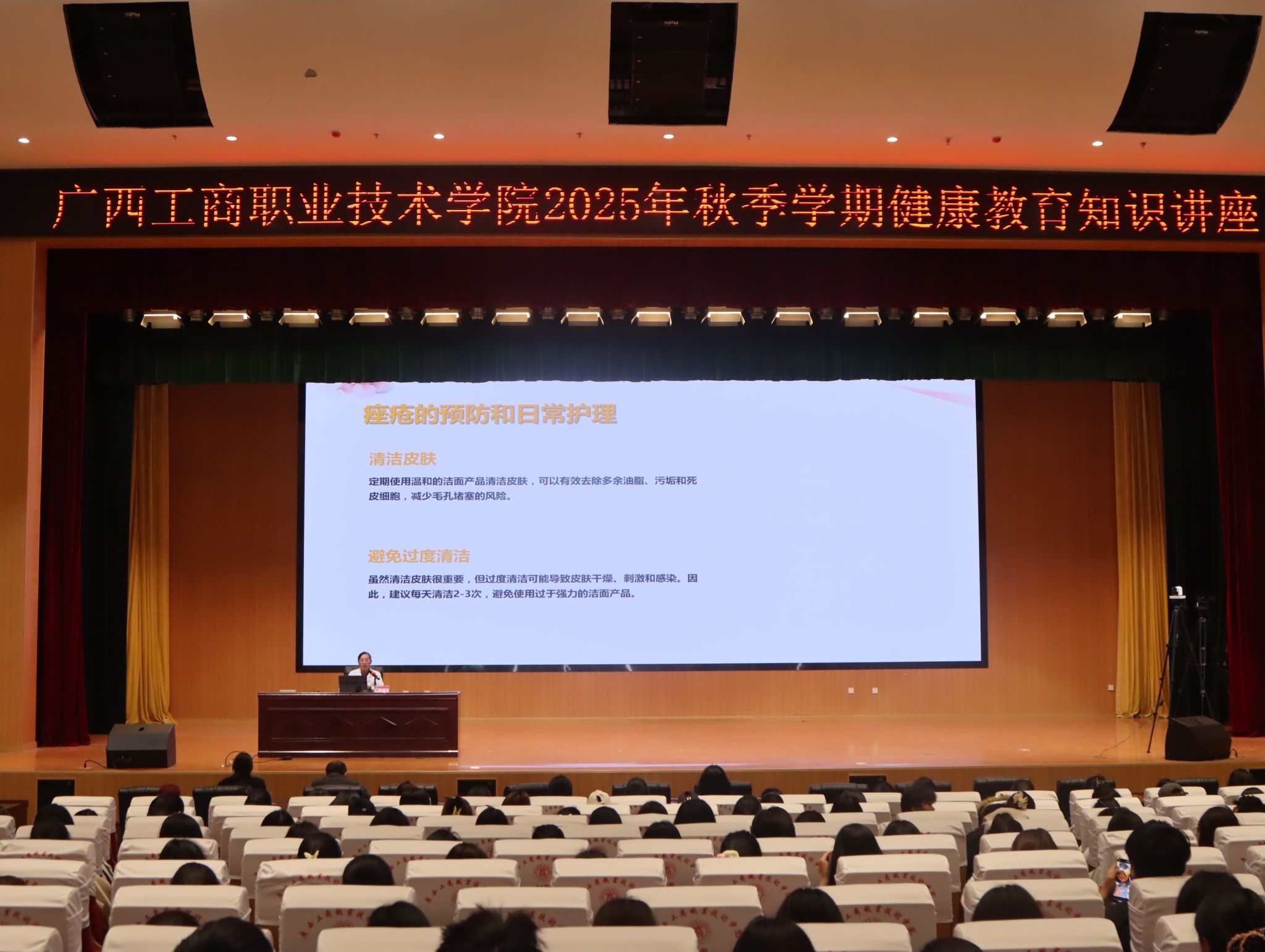 為實施健康中國戰(zhàn)略,強化學生健康素養(yǎng)培育,引導(dǎo)師生樹立科學健康觀念,12月16日,我校在武鳴校區(qū)學術(shù)活動中心開展2025年秋季學期健康教育知識講座。本次講座特邀南寧市武鳴區(qū)婦幼保健院皮膚科主任黃麗芳、產(chǎn)科副主任醫(yī)師覃柳芳授課,財金學院、糧油與管理學院、經(jīng)貿(mào)與康旅學院、會計學院師生代表參加了此次講座。