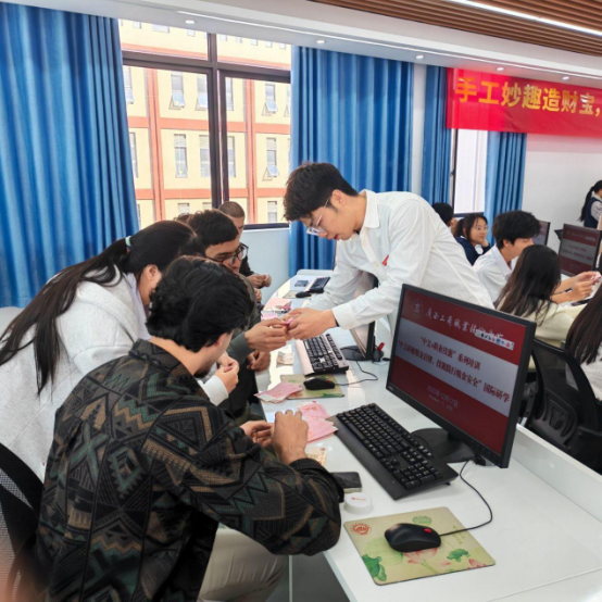 在“財智手工探趣”中,國際學(xué)生通過認(rèn)識人民幣、趣味練功券折紙,既提升中文認(rèn)知能力,又在手工實踐中體會會計工作的嚴(yán)謹(jǐn)性與中國傳統(tǒng)手工藝術(shù)的魅力,間接了解糧食貿(mào)易背后的金融文化邏輯。
