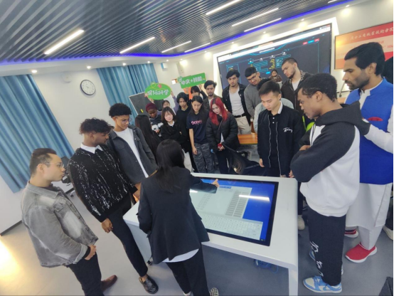 “數(shù)字金融互動體驗”環(huán)節(jié),學(xué)生們實操VTM智能終端、數(shù)字人民幣兌換、區(qū)塊鏈沙盤等,在中文溝通中掌握金融科技應(yīng)用技能,為未來參與跨國糧食貿(mào)易打下基礎(chǔ)。