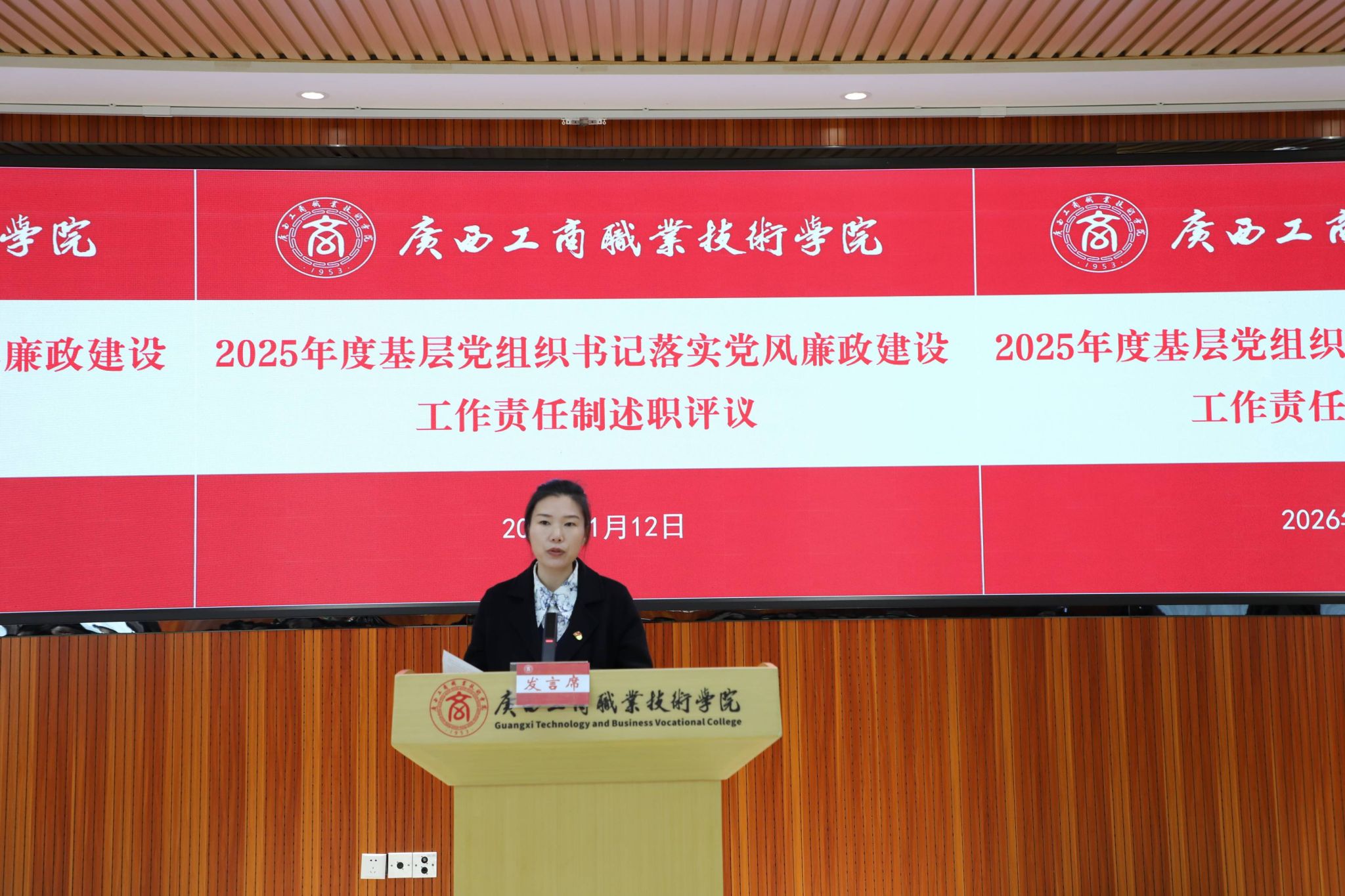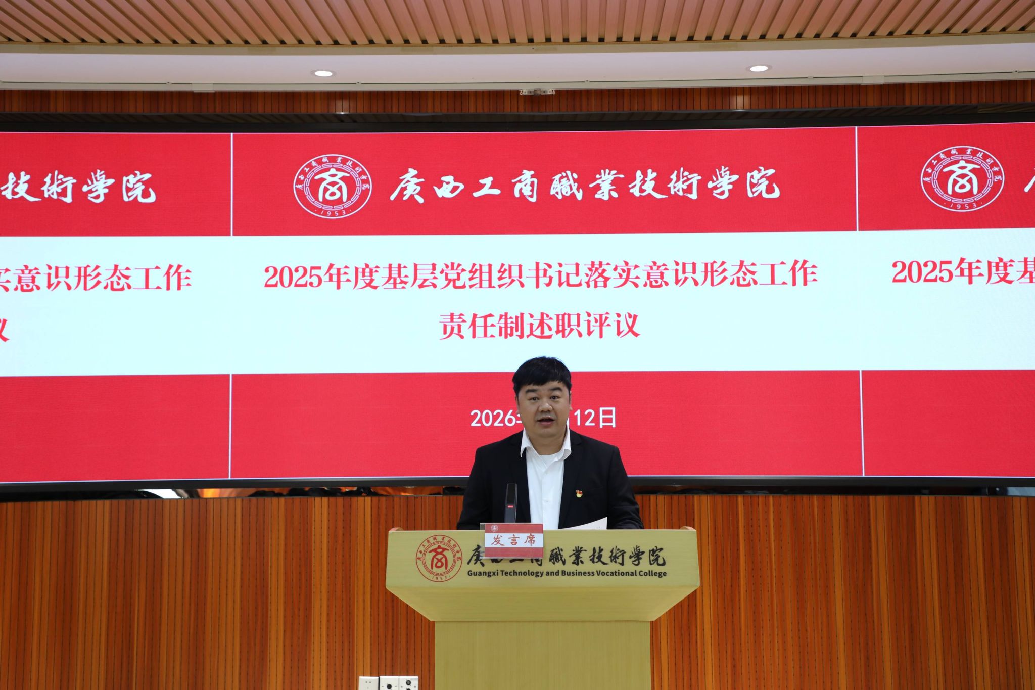 2026年1月12日上午,我校黨委以黨委擴(kuò)大會議的方式在鵬飛校區(qū)開展2025年度基層黨組織書記抓黨建工作述職評議考核暨部門和中層管理人員年度述職評議。學(xué)校黨委委員,各黨總支、各直屬黨支部書記、委員,中層管理人員、教代會代表參加會議,學(xué)校黨委書記李維主持會議。