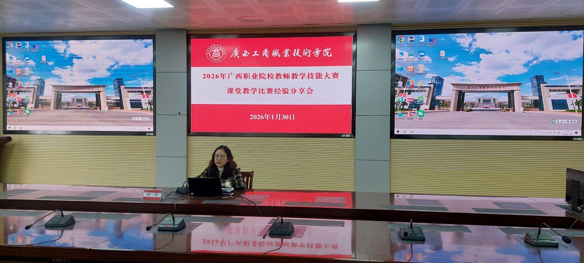 為扎實(shí)推進(jìn)2026年廣西職業(yè)院校教師教學(xué)技能大賽課堂教學(xué)比賽備賽工作,全面提升參賽作品質(zhì)量與教師教學(xué)核心能力,2026年1月30日上午,我校在鵬飛校區(qū)召開(kāi)經(jīng)驗(yàn)分享會(huì)。學(xué)校副校長(zhǎng)鄭華,教務(wù)處、各二級(jí)學(xué)院主要領(lǐng)導(dǎo),參賽團(tuán)隊(duì)全體成員,以及各二級(jí)學(xué)院骨干教師代表參加了會(huì)議。