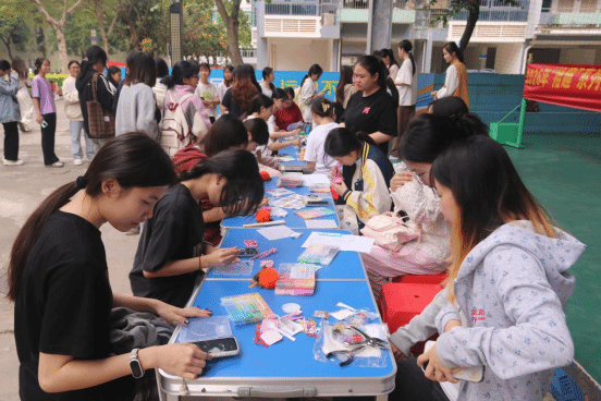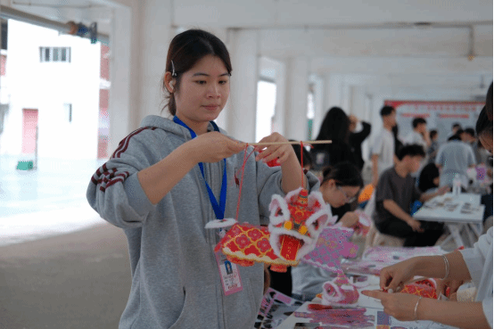 活動開展了非遺竹編制作、漆扇繪制、香囊制作、手繪團(tuán)扇、折扇繪畫、點茶活動、壯鄉(xiāng)非遺繡球手作等活動。隨著下課鈴聲響起,三個校區(qū)的活動現(xiàn)場逐漸熱鬧起來。武鳴校區(qū)“一站式”學(xué)生社區(qū)、A7、A11架空層,鵬飛校區(qū)3棟架空層,中堯校區(qū)風(fēng)雨球場內(nèi)人頭攢動,由各學(xué)生社團(tuán)精心布置的體驗攤位錯落有致,志愿者們熱情洋溢。各活動得到了廣大師生的積極響應(yīng)與熱情參與。在活動開展期間,各板塊活動現(xiàn)場始終保持著較高的參與度,部分熱門項目前排起了長隊,同學(xué)們在動手實踐中感受傳統(tǒng)手工藝的魅力與趣味。