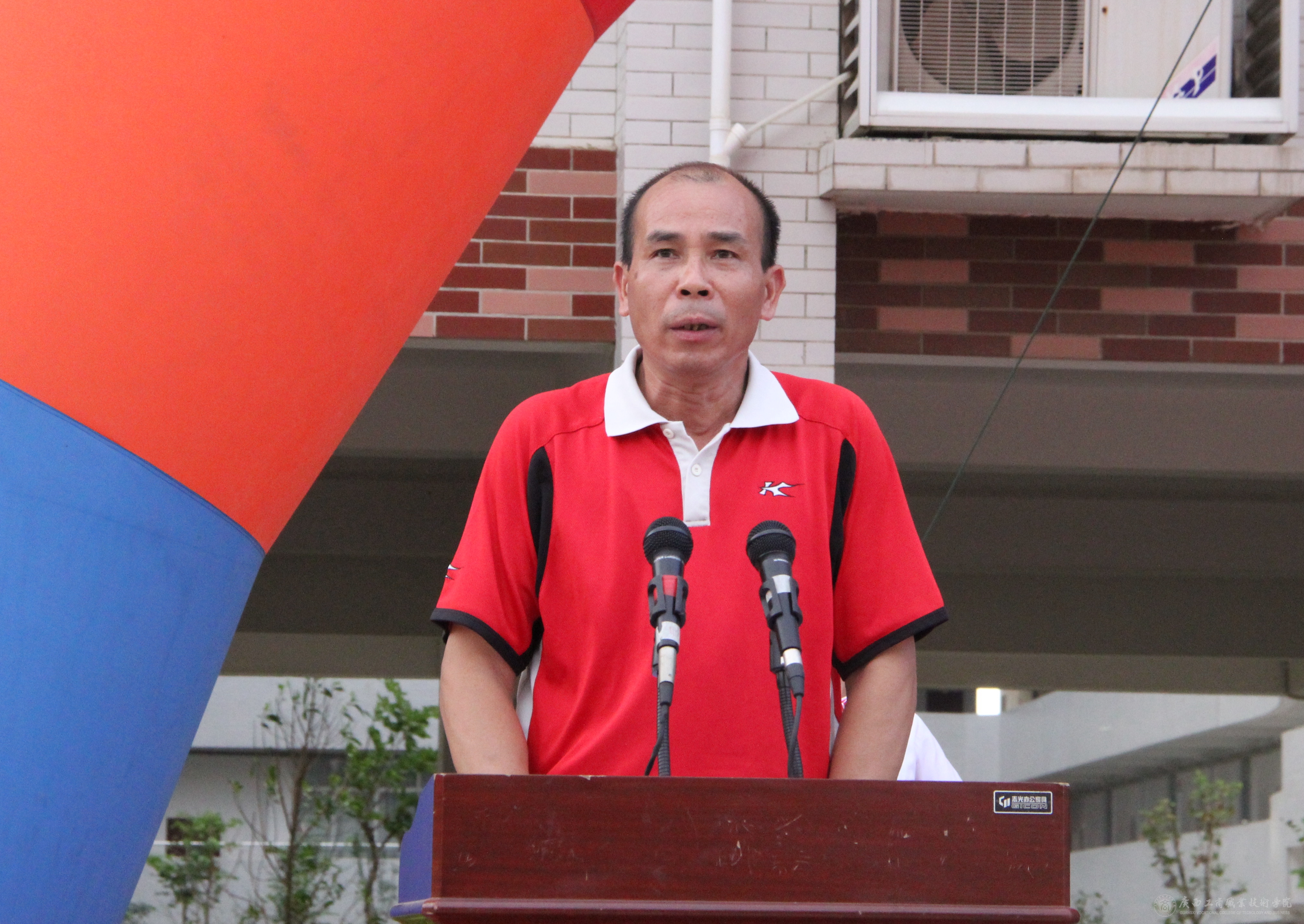 運(yùn)動(dòng)會(huì)總裁判長(zhǎng)盧炳秋宣布成績(jī)