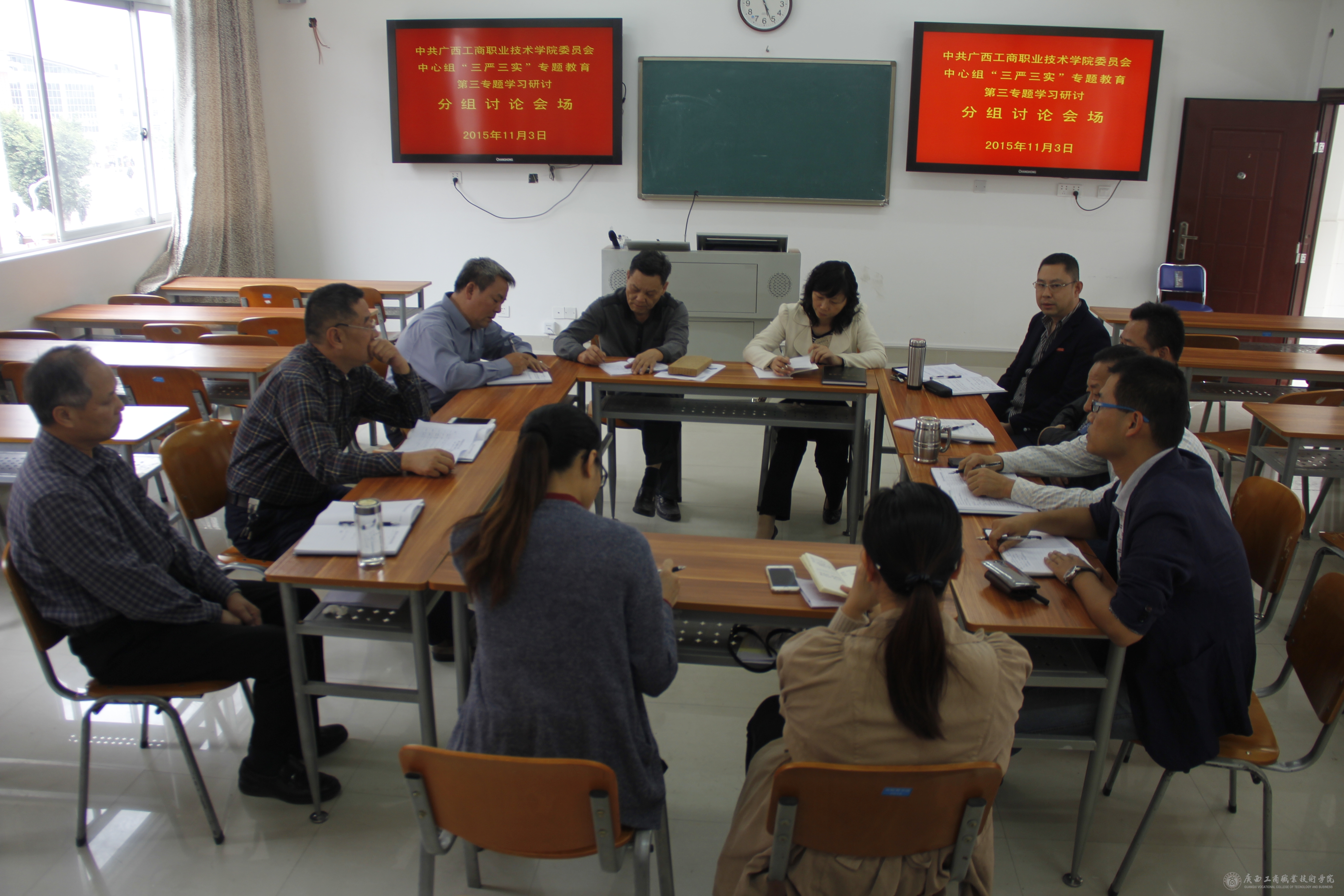 2015年11月3日上午9時(shí),我院在教學(xué)樓2119會(huì)議室召開黨委中心組“三嚴(yán)三實(shí)”專題教育第三專題學(xué)習(xí)研討會(huì)。學(xué)院中層以上領(lǐng)導(dǎo)干部參加此次研討會(huì),會(huì)議由覃武云書記主持。