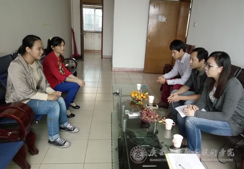 頂崗實習檢查小組與葉瓊蓮經(jīng)理和實習生李林燕交流座談