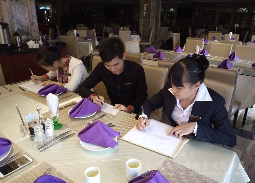 酒店何秀嬌經(jīng)理和實習生吳秋良、黃金玲填寫調查問卷